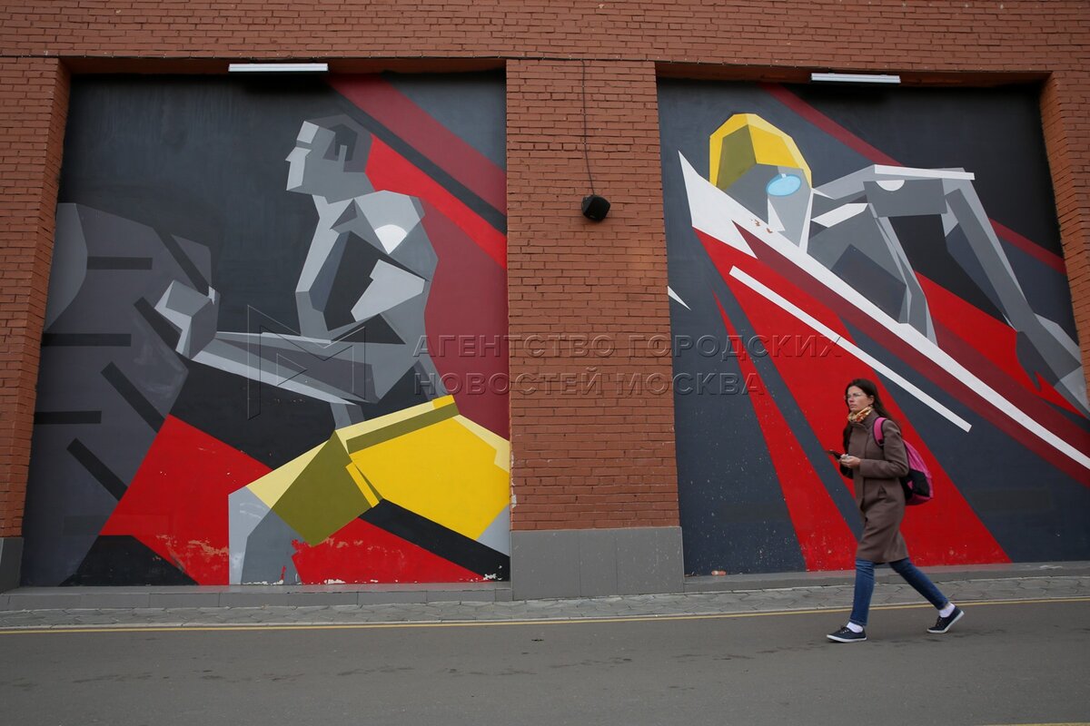 Граффити российского художника-граффитиста Славы Птрк на территории дизайн-завода...
