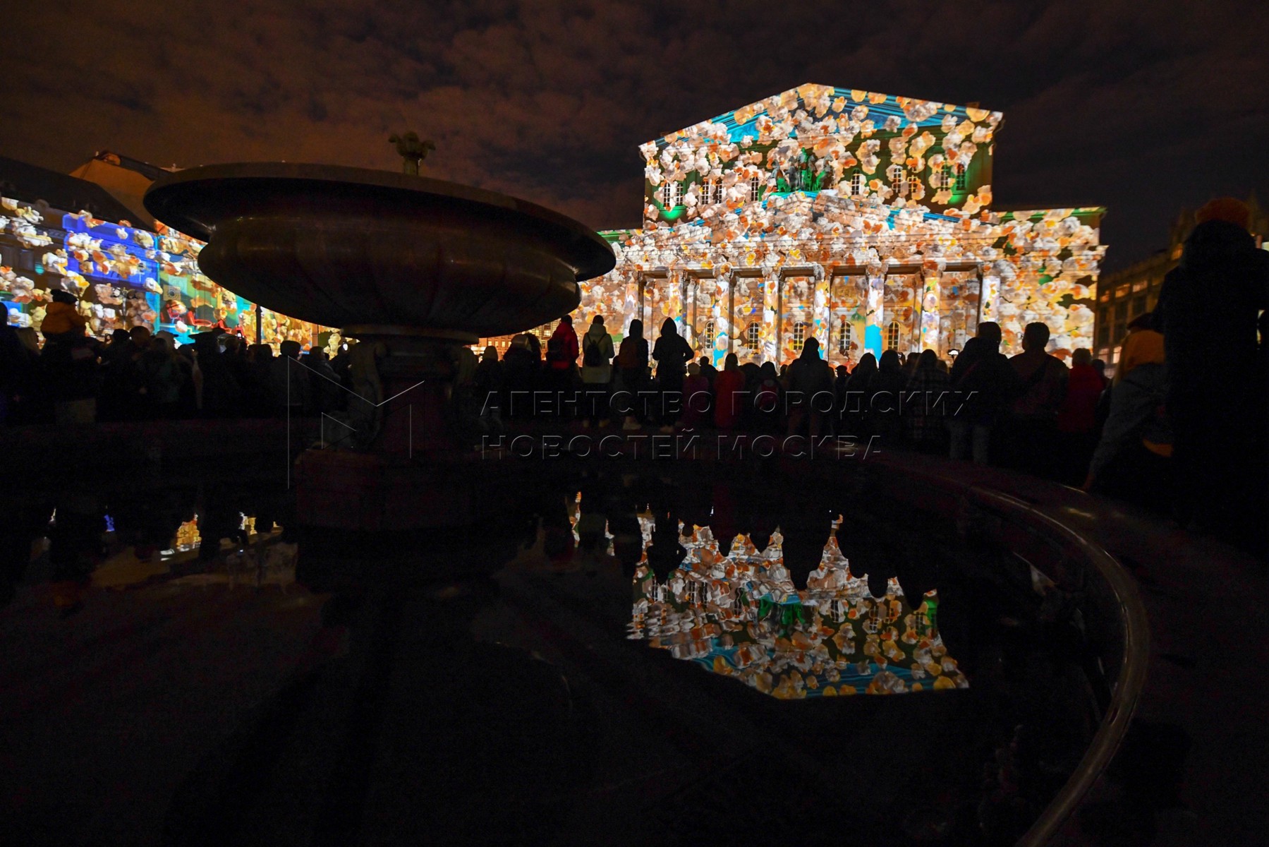 • Описание: Площадка международного фестиваля «Круг света» на фасаде Большого театра.