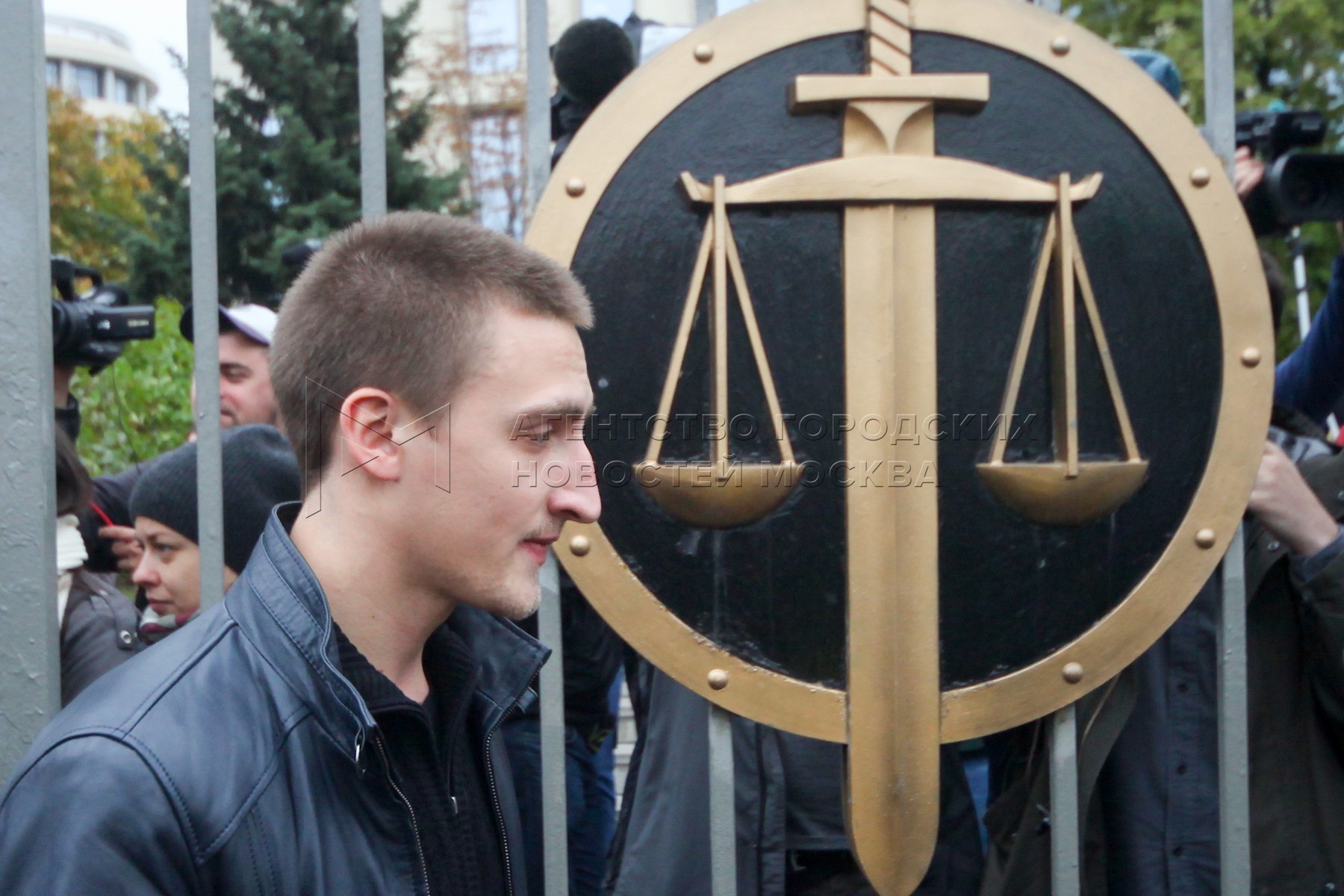 Актер Павел Устинов (в центре) на рассмотрении жалобы на приговор в Московском го...