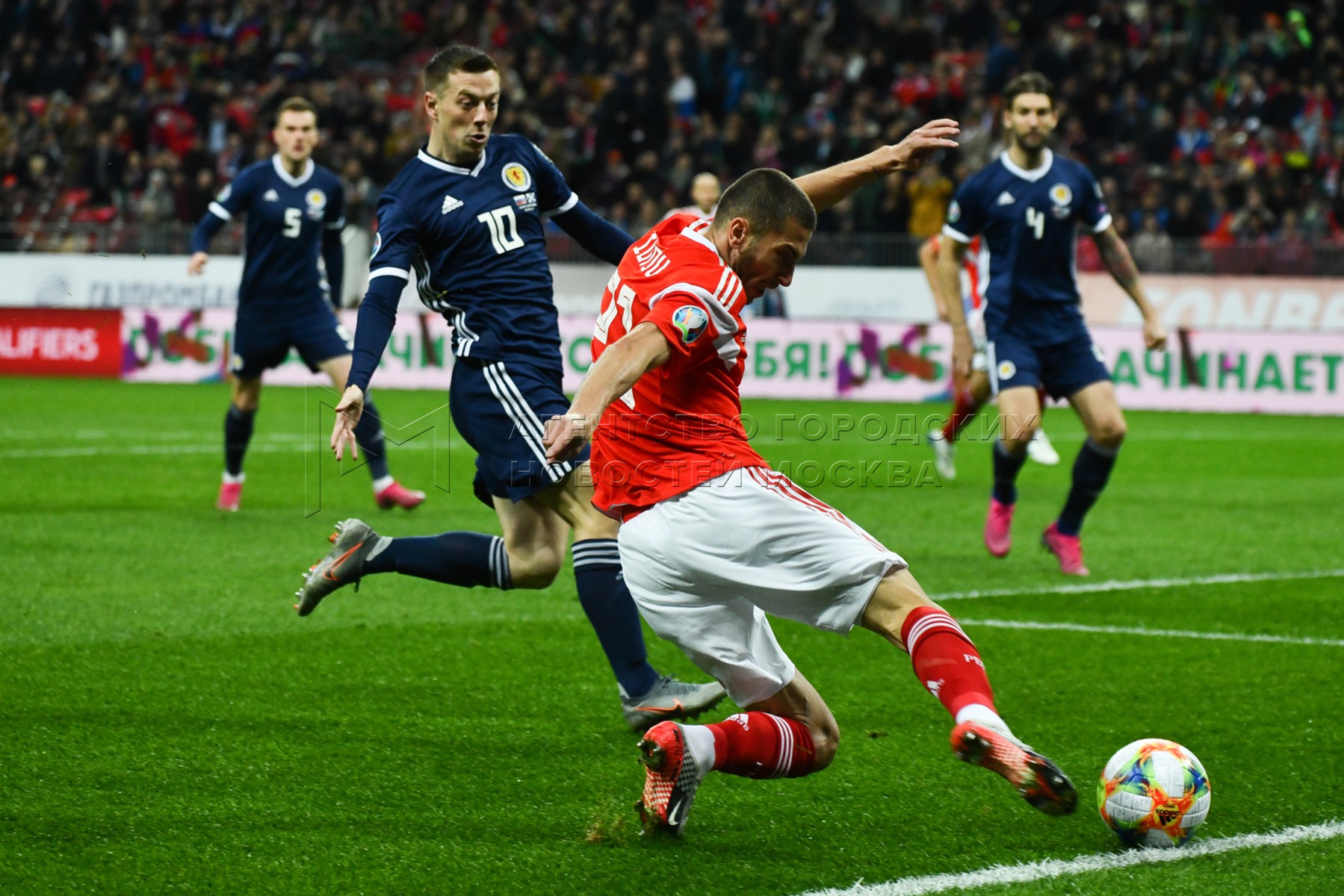 - Заголовок: Футбольный матч отборочного турнира ЧЕ-2020 между сборными России и Шотландии на стадионе «Лужники»