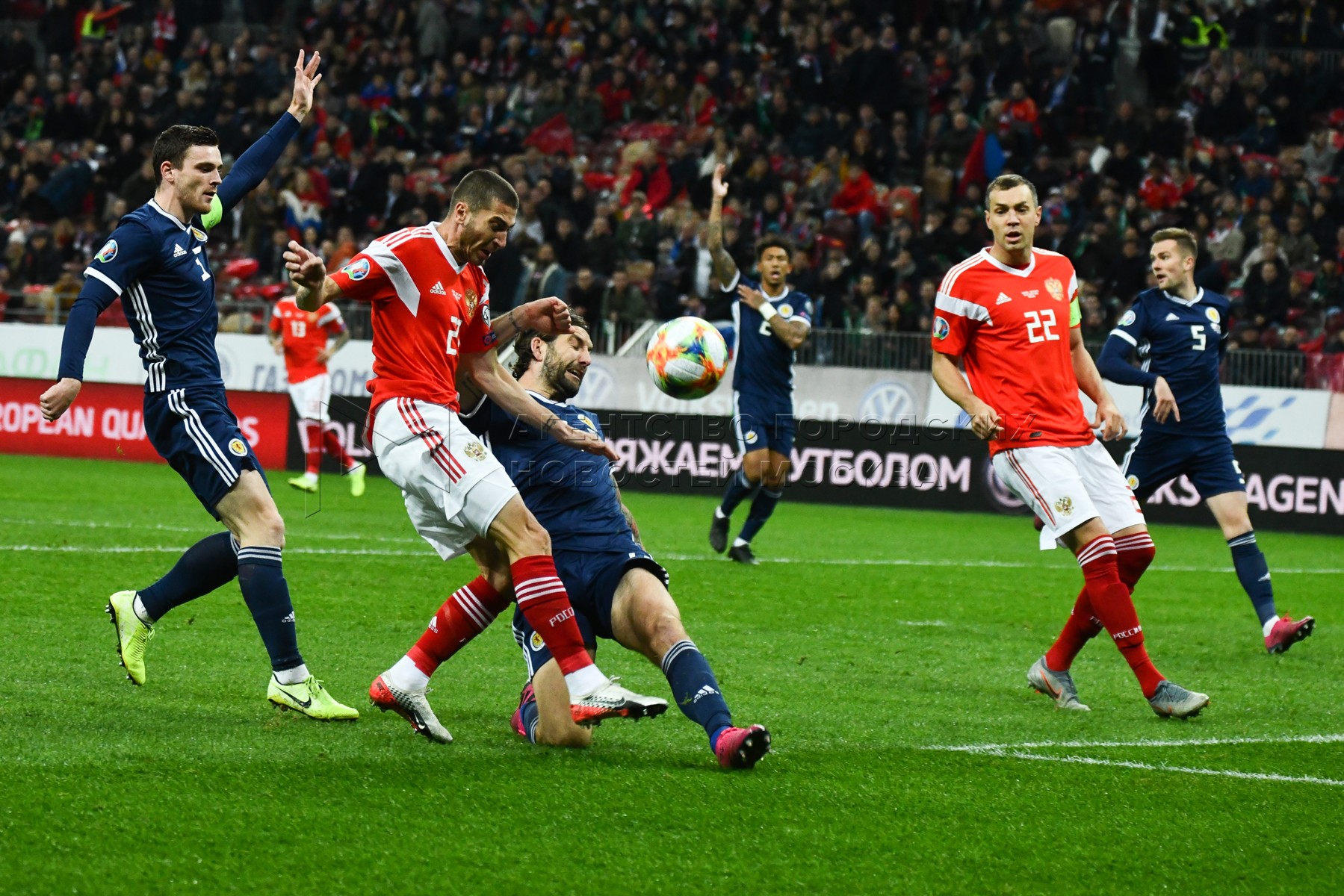 - Заголовок: Футбольный матч отборочного турнира ЧЕ-2020 между сборными России и Шотландии на стадионе «Лужники»