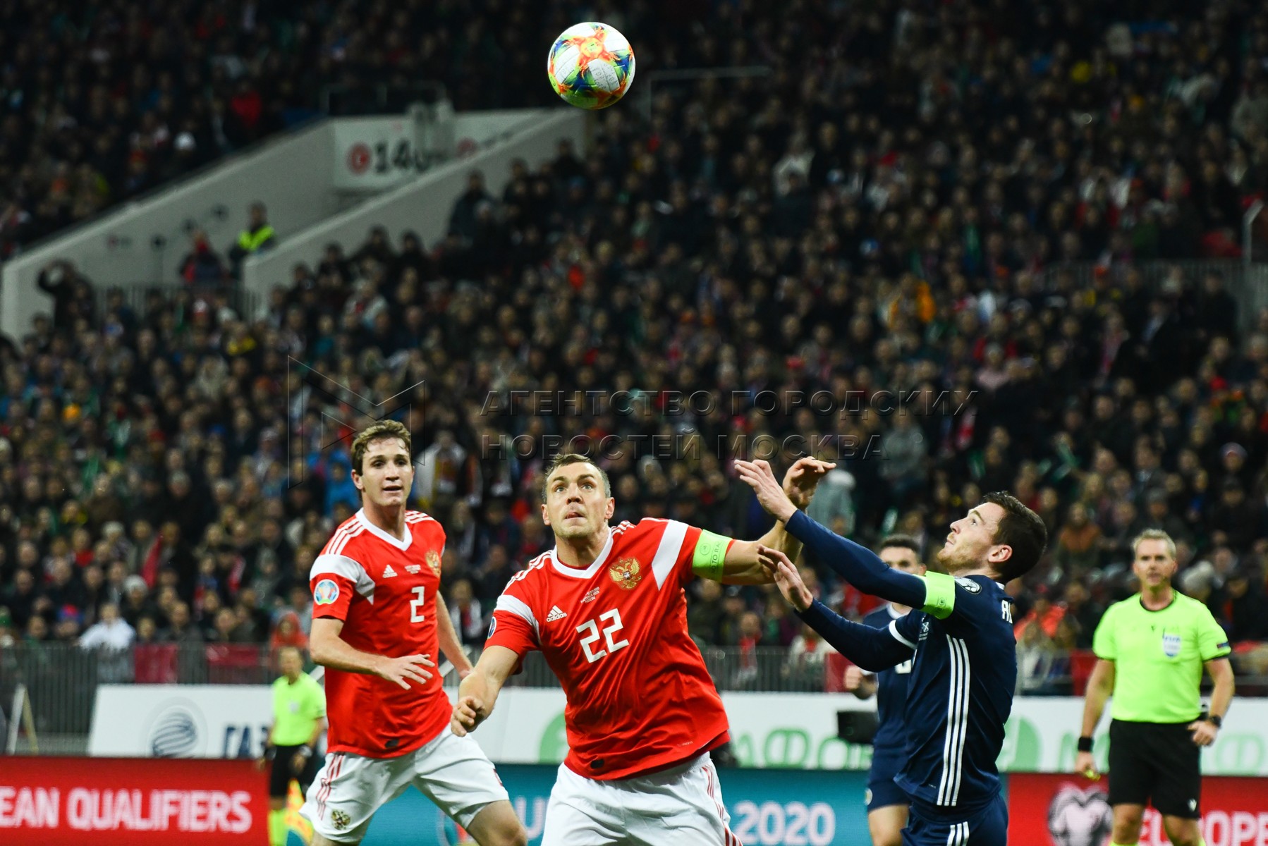 - Заголовок: Футбольный матч отборочного турнира ЧЕ-2020 между сборными России и Шотландии на стадионе «Лужники»