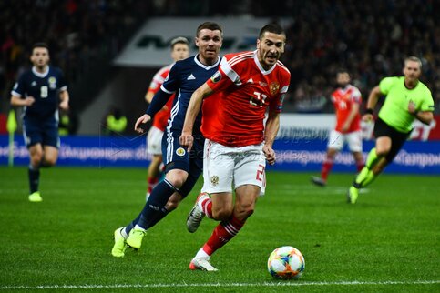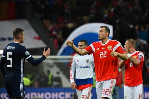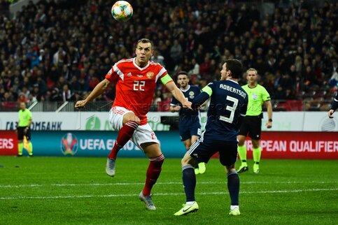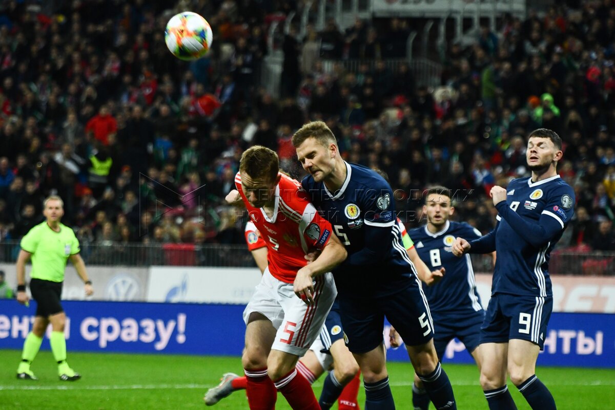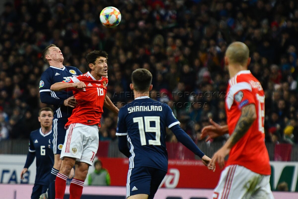 - Заголовок: Футбольный матч отборочного турнира ЧЕ-2020 между сборными России и Шотландии на стадионе «Лужники»