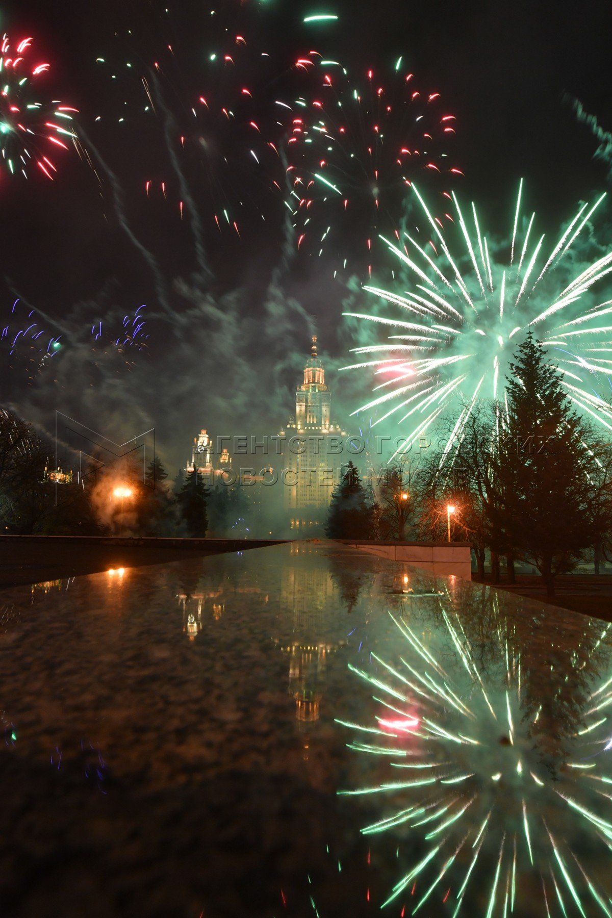 • Описание: Праздничный салют и фейерверки в честь открытия фестиваля NAUKA 0+ в здании Фундаментальной библиотеки МГУ.