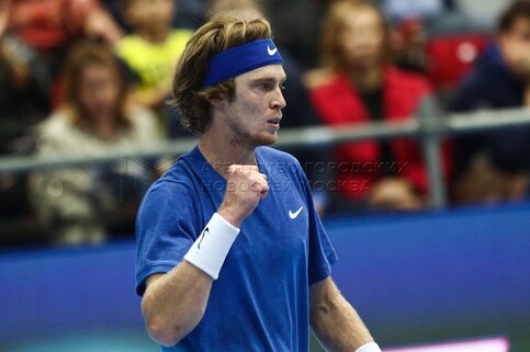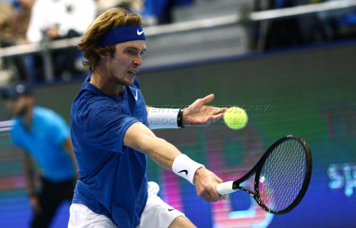 Российский теннисист Андрей Рублев во время мужского одиночного финала теннисного...