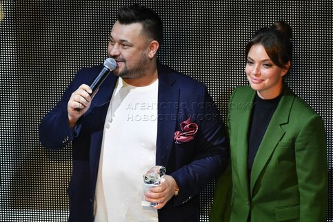 Ведущие церемонии: певица Саша Савельева, актер Вячеслав Манучаров (справа) во вр...