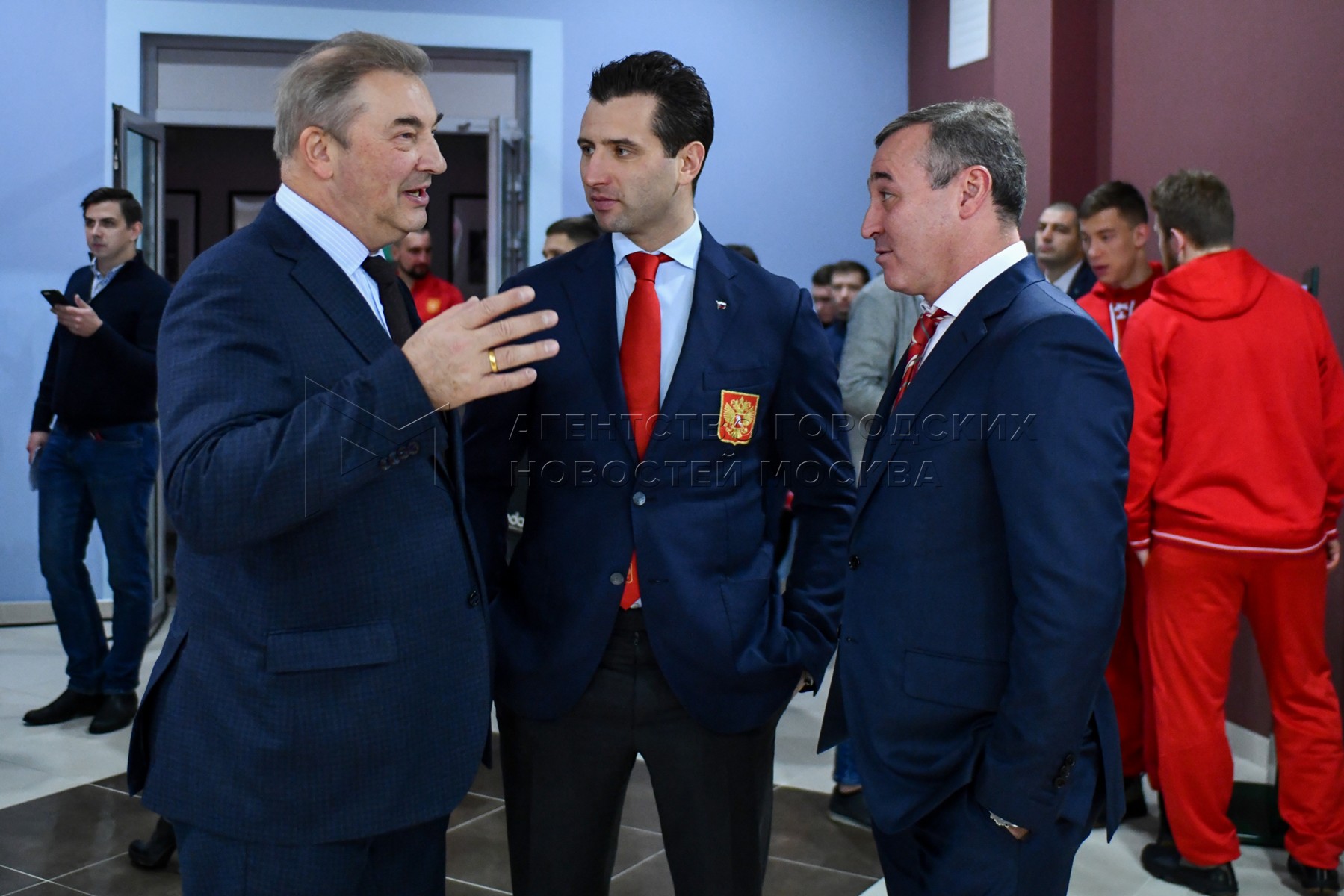 • Описание: Советский хоккеист, глава Федерации хоккея России Владислав Третьяк, первый вице-президент Федерации хоккея России Роман Ротенберг, сооснователь российской букмекерской компании «Лига Ставок» Юрий Красовский (слева направо) во время церемонии вручения премии «Герои хоккея» в учебно-тренировочном центре «Новогорск».