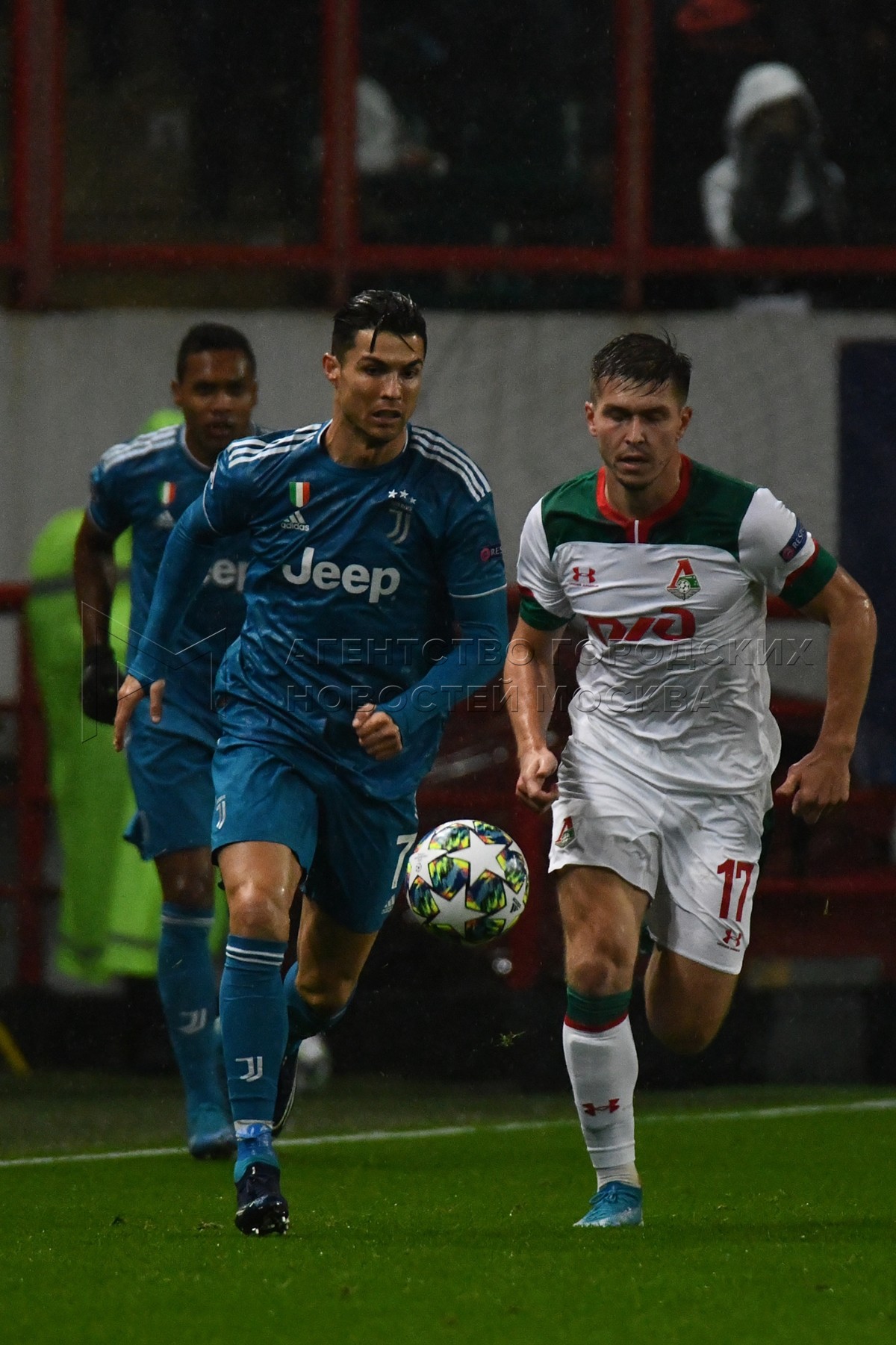 Игроки «Ювентуса» Криштиану Роналду и «Локомотива» Мацей Рыбусь, Дмитрий Баринов ...