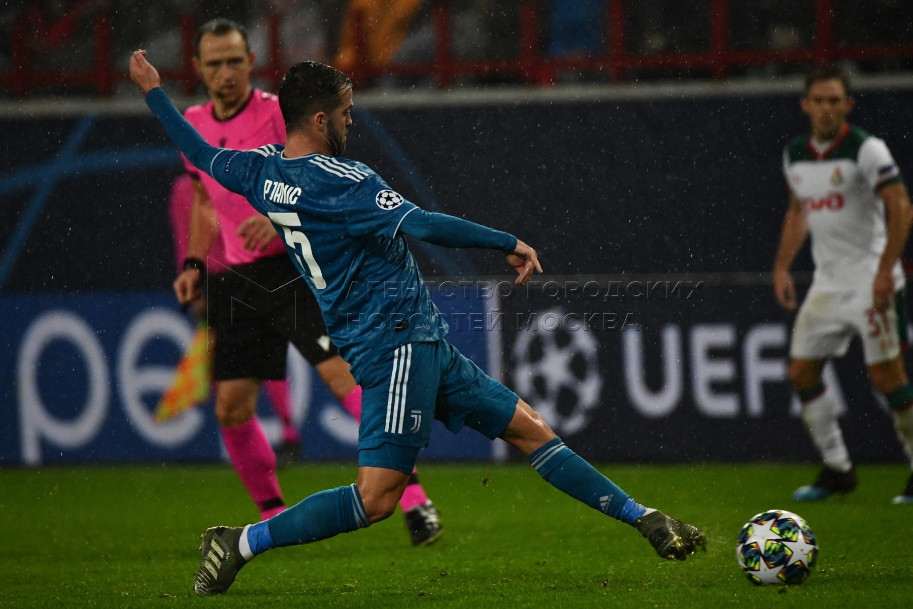 Игрок «Ювентоса» Миралем Пьянич во время футбольного матча Лиги чемпионов УЕФА. «...
