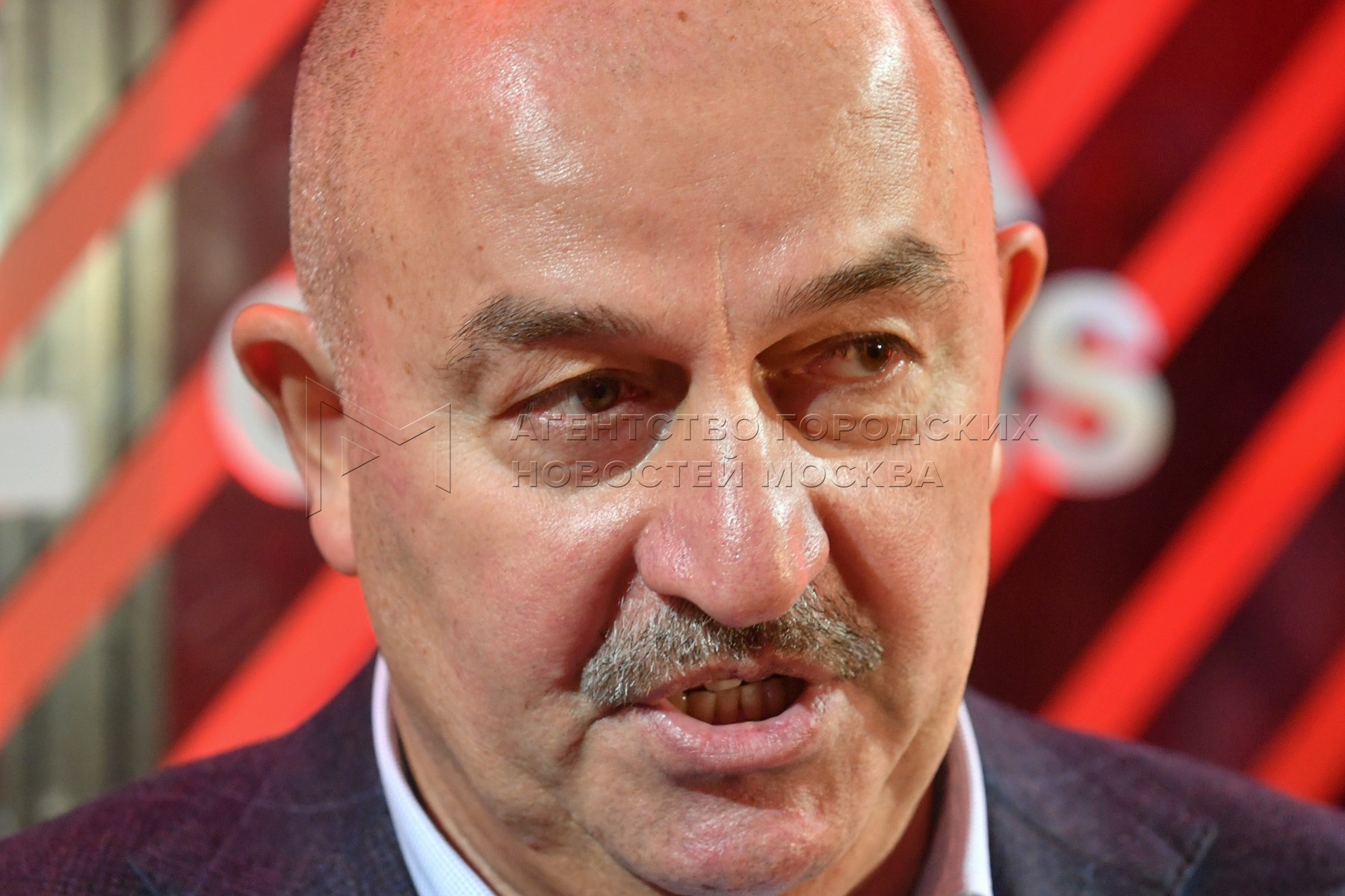 Главный тренер сборной России Станислав Черчесов во время презентации формы к чем...