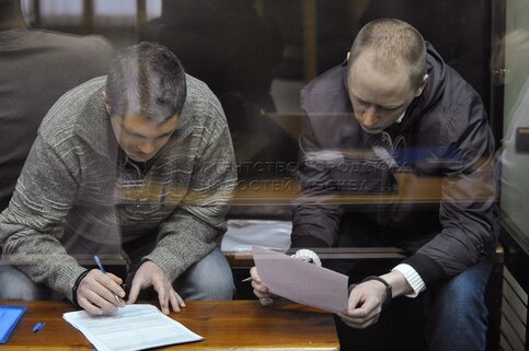 Фигурант дела «Нового величия» Петр Карамзин (слева), обвиняемый в экстремизме, в...