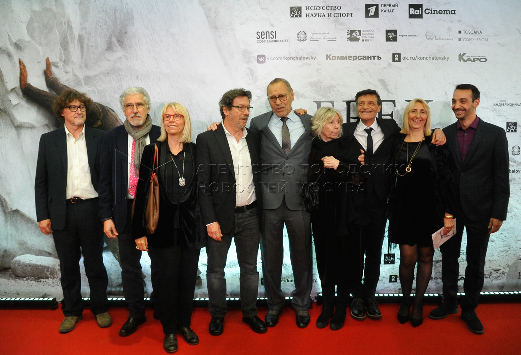 • Описание: Режиссер Андрей Кончаловский (в центре) перед началом премьеры фильма «Грех» в кинотеатре «Каро 11 Октябрь».