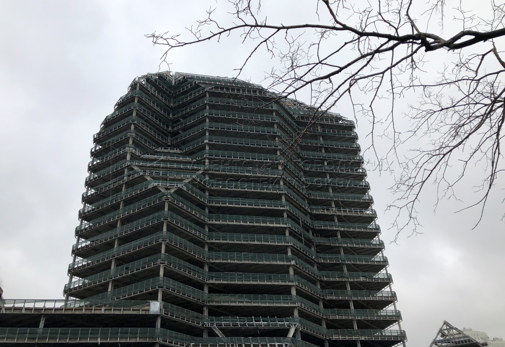 Здание бизнес-центра «Зенит», расположенного по адресу: проспект Вернадского, д. 82, после частичного демонтажа.