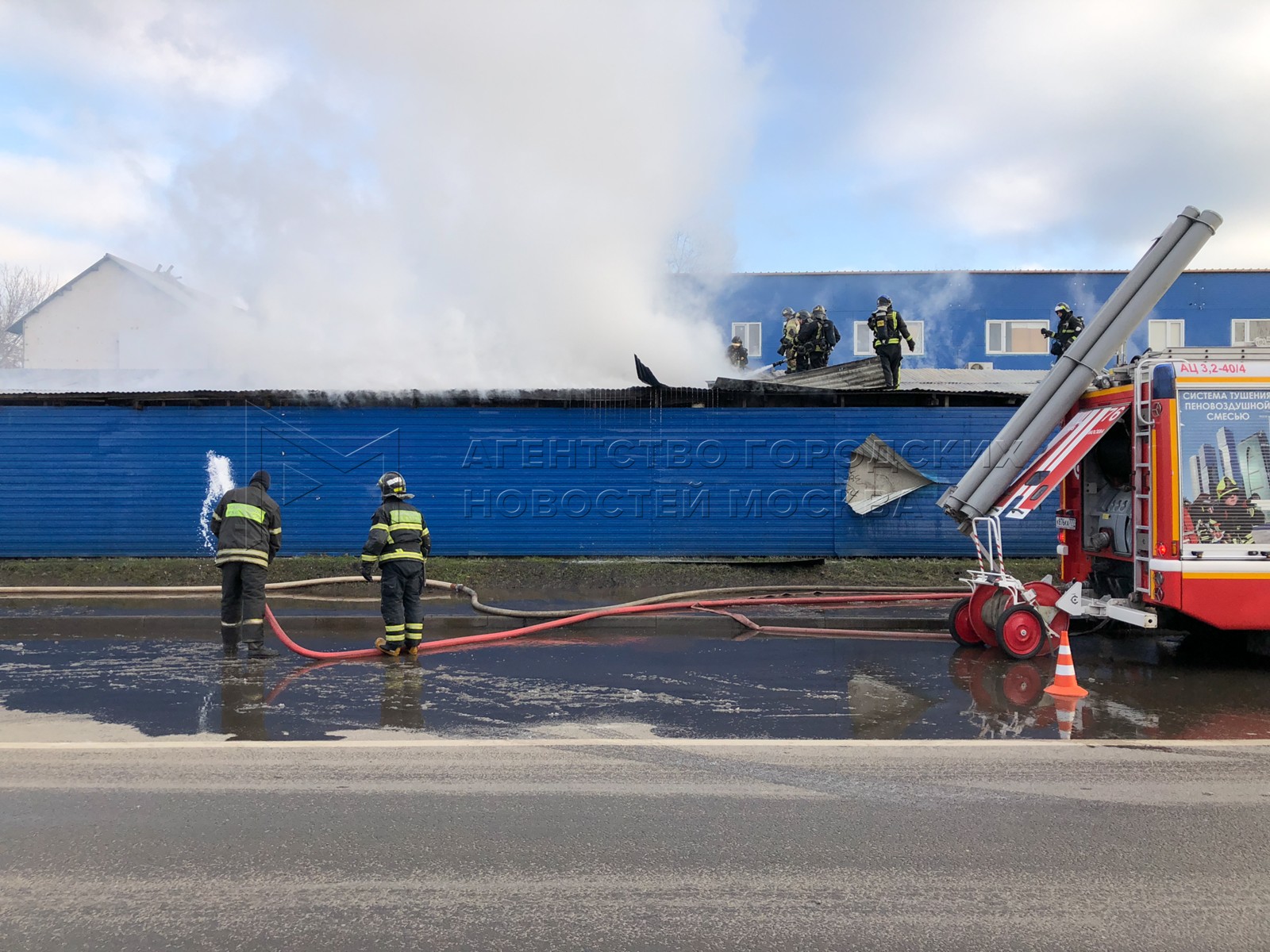 • Заголовок: Работа пожарно-спасательных подразделений по ликвидации возгорания на складе в Печатниках