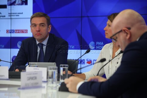 Руководитель Российской системы качества Максим Протасов на пресс-конференции, по...