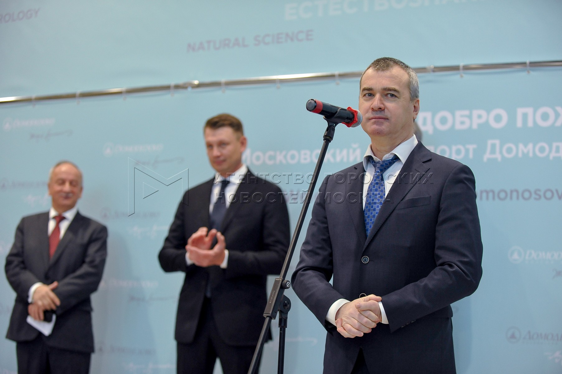Директор аэропорта Домодедово им. М.Ломоносова Игорь Борисов (справа) на присвоении имени русского ученого Михаила Ломоносова московскому аэропорту Домодедово в рамках проекта «Великие имена России».
