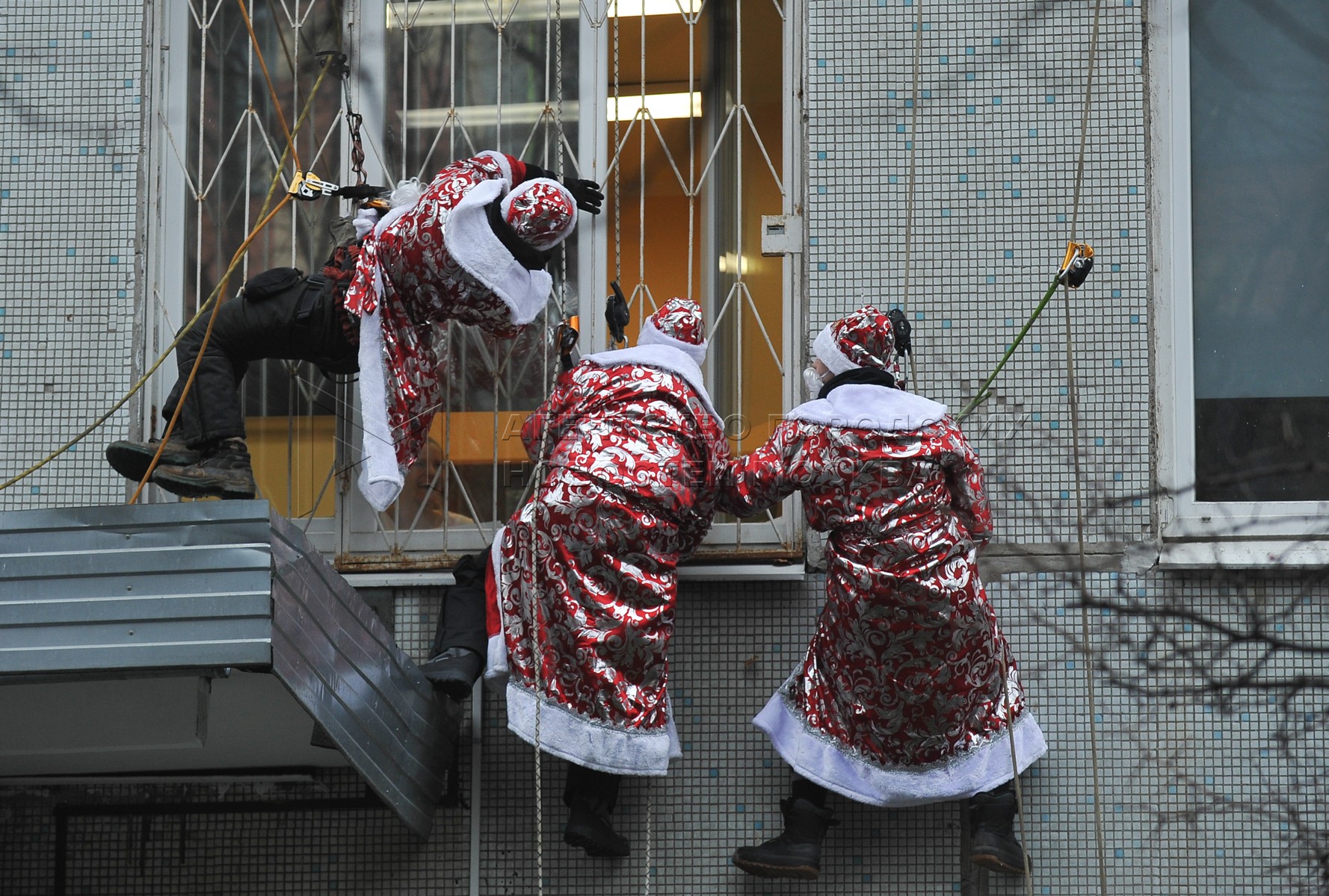 Акция московских пожарных и спасателей в образе Дедов Морозов и Снегурочек в ГБУЗ...