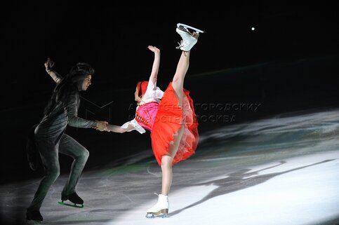 • Описание: Фигурист Евгений Плющенко и его сын Александр Плющенко во время ледового шоу «Золушка».
