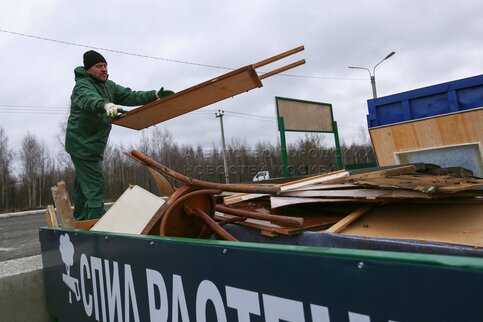 Пункт приема старых вещей и бытовых отходов на переработку в Подмосковье.