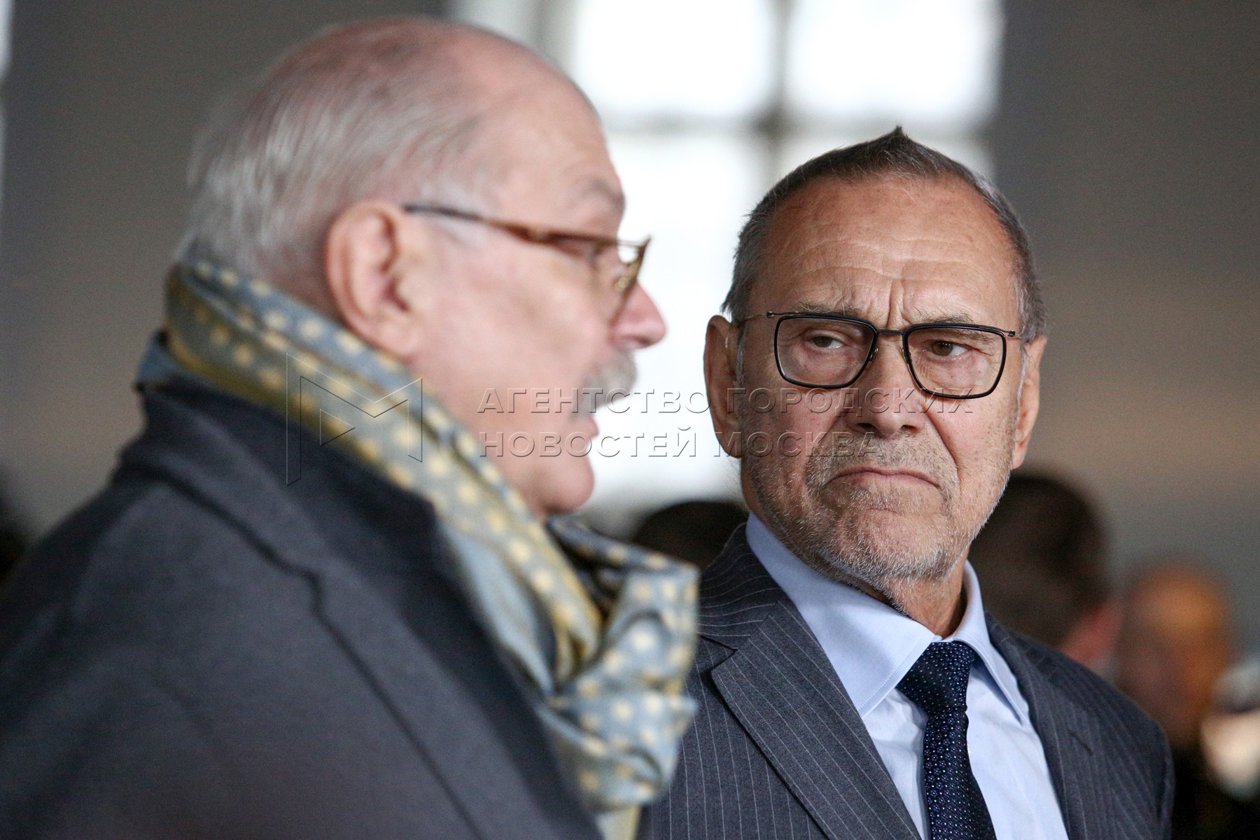 • Описание: Сценарист, председатель совета учредителей Фонда Петра Кончаловского Андрей Кончаловский (справа) на ежегодном послании президента России Владимира Путина Федеральному Собранию в Центральном выставочном зале (ЦВЗ) «Манеж».
