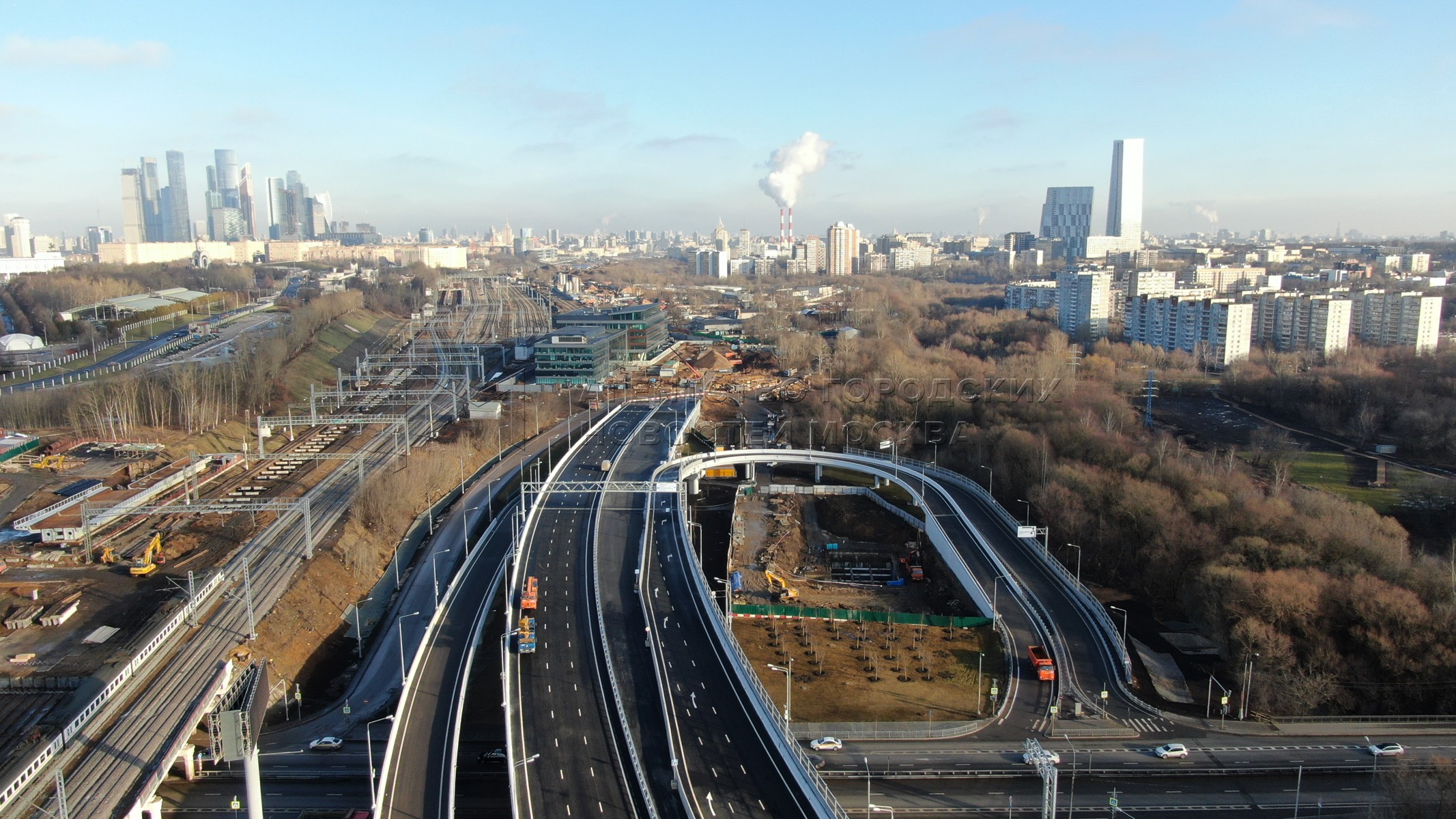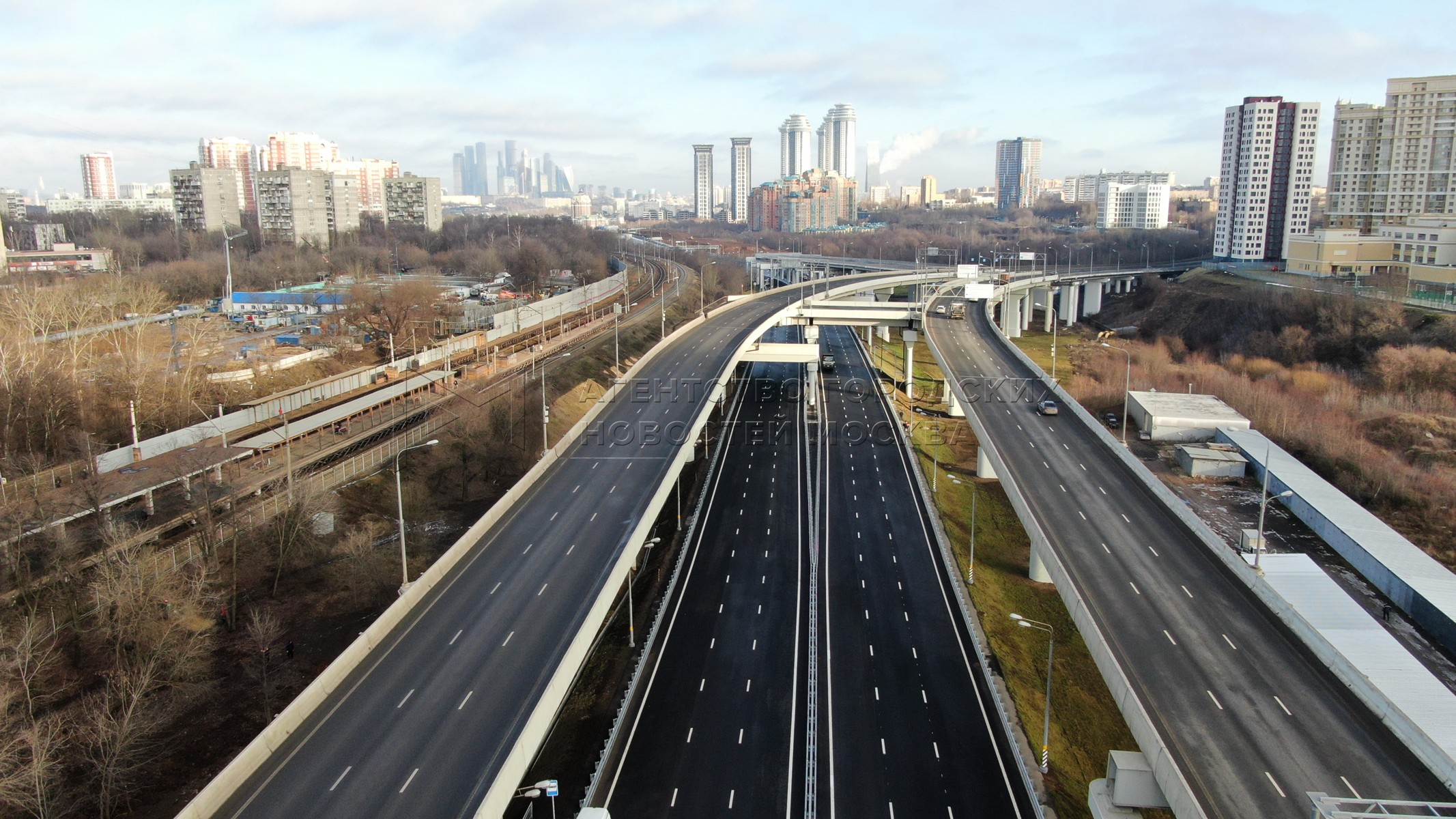 • Заголовок: Вид с квадрокоптера на Южный дублер Кутузовского проспекта перед открытием