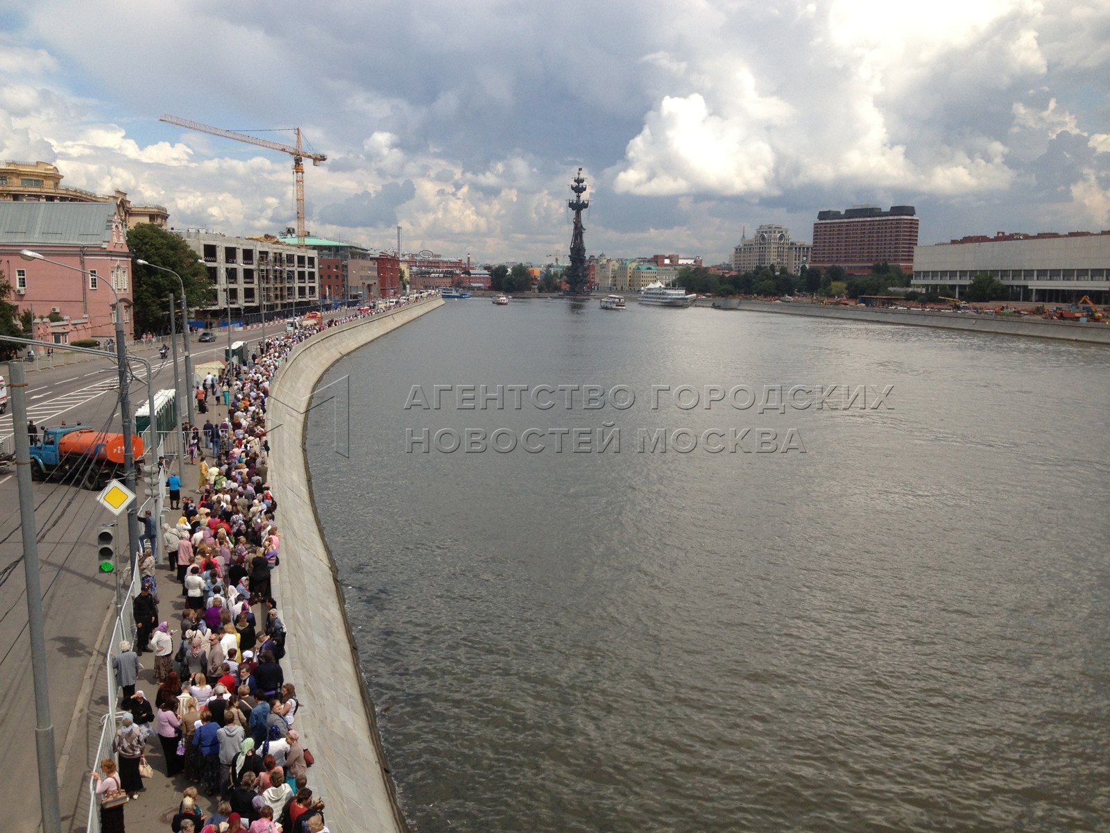 • Описание: Очередь на поклон кресту Андрея Первозванного растянулась до Крымского моста.