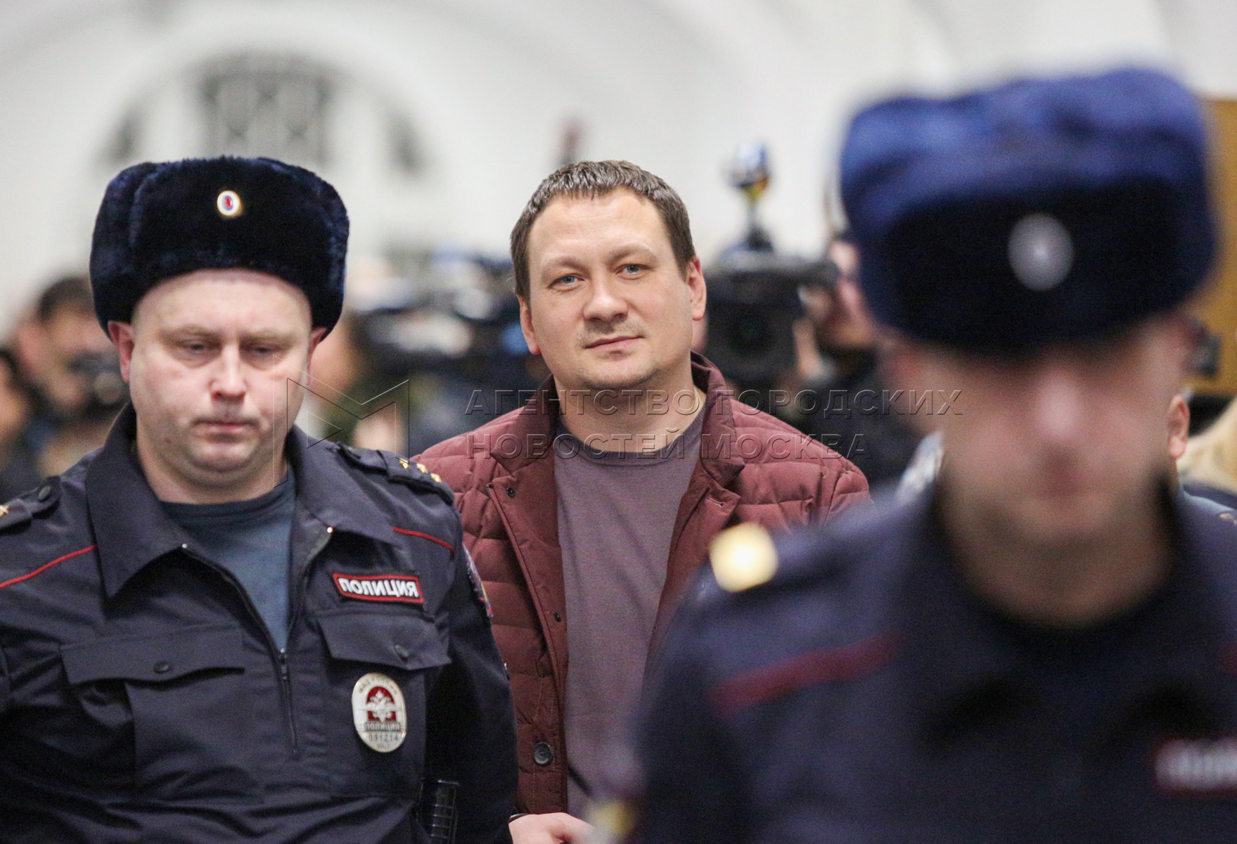 - Описание: Бывший сотрудник полиции Денис Коновалов, обвиняемый в незаконном уголовном преследовании журналиста Ивана Голунова во время рассмотрения ходатайства следствия об его аресте в Басманном районном суде.