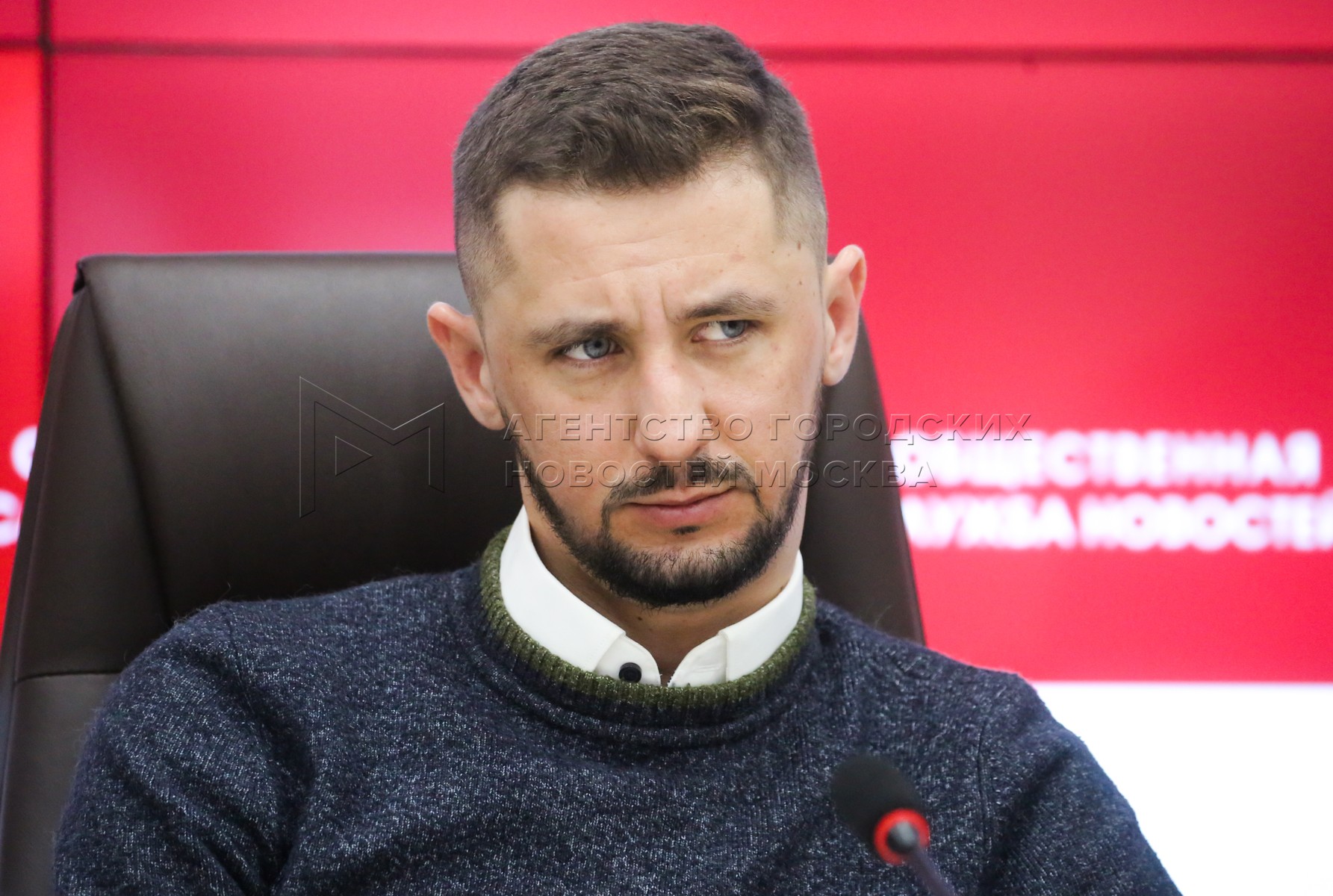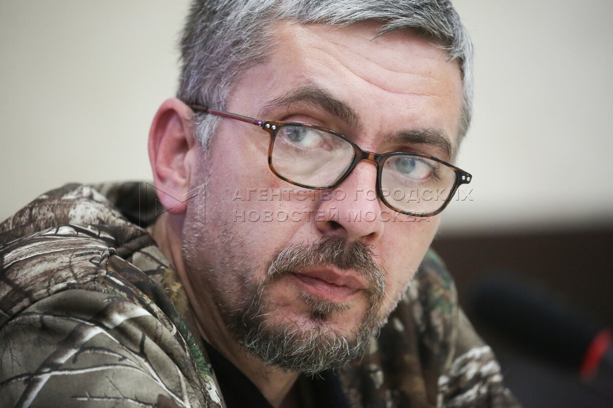 Пассажир авиакомпании «Аэрофлота» Михаил Галин (хозяин кота Виктора) во время пресс-конференции на тему «Коты vs «Аэрофлот». Бой насмерть или компромисс».