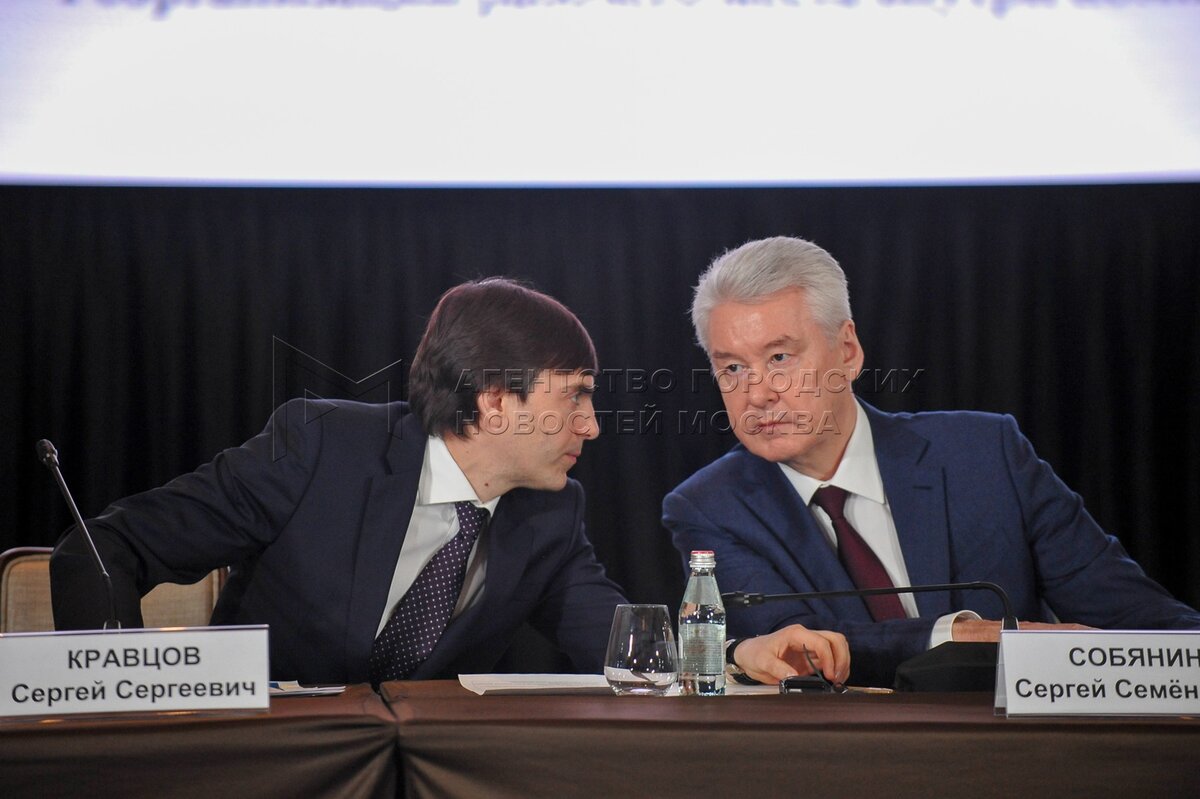 Министр просвещения РФ Сергей Кравцов (слева) и мэр Москвы Сергей Собянин во врем...