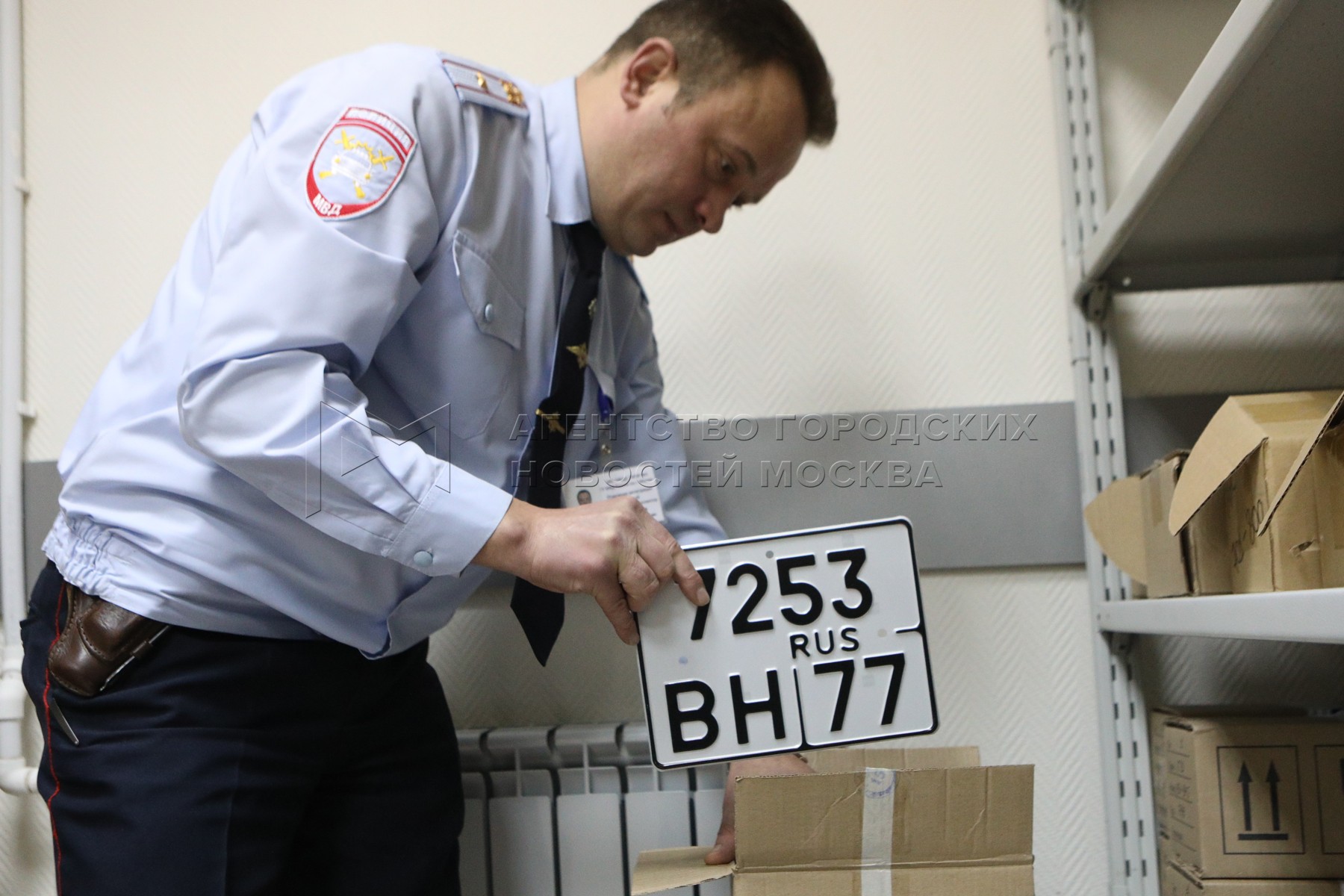 Выдача автомобильных номеров в отделении регистрации межрайонного отдела ГИБДД технического надзора и регистрационно-экзаменационной работы №1 Главного управления МВД России по Москве.