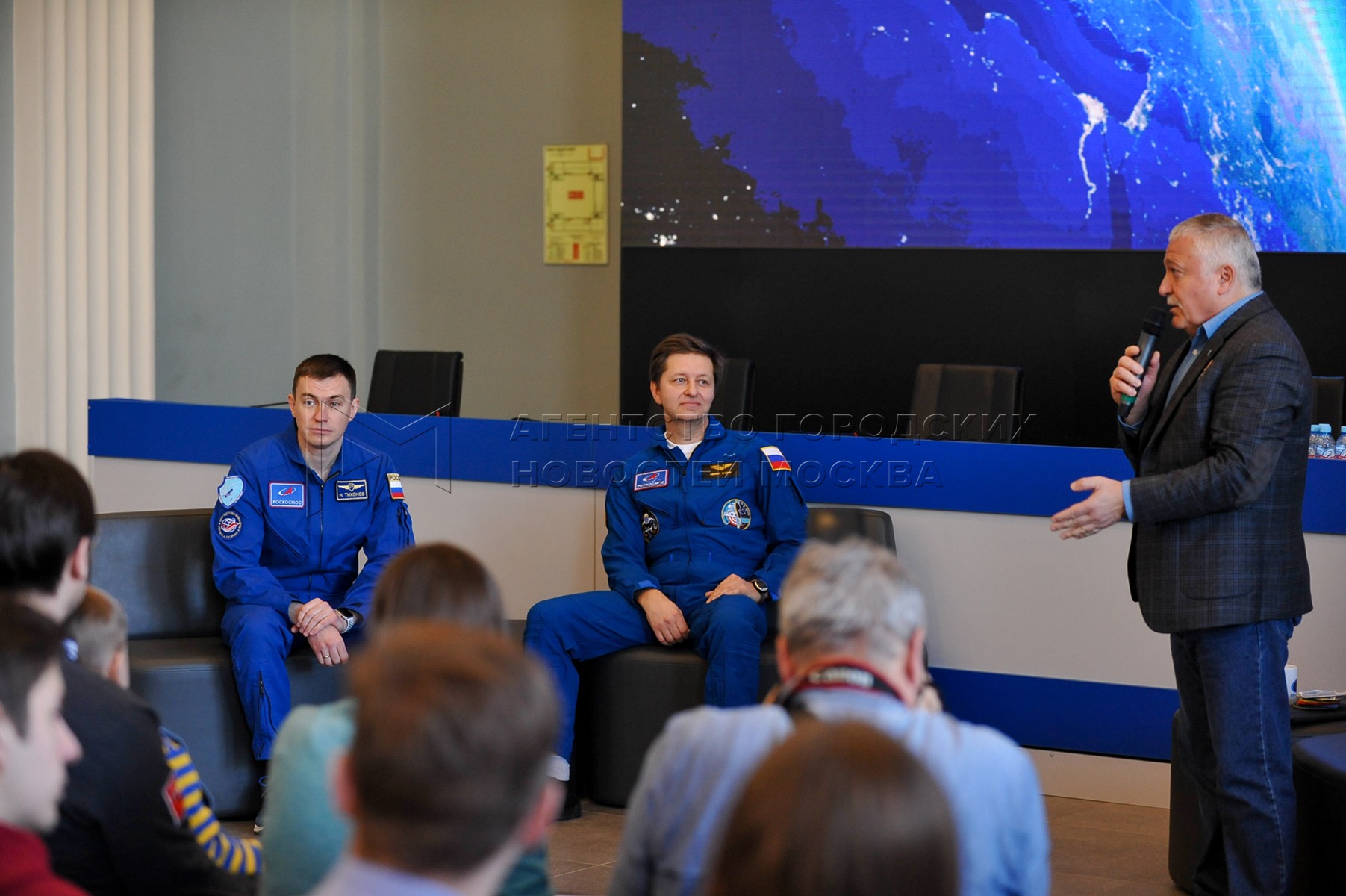 Член экипажа МКС-63 Николай Тихонов, ведущий встречи летчик-космонавт РФ, герой Р...