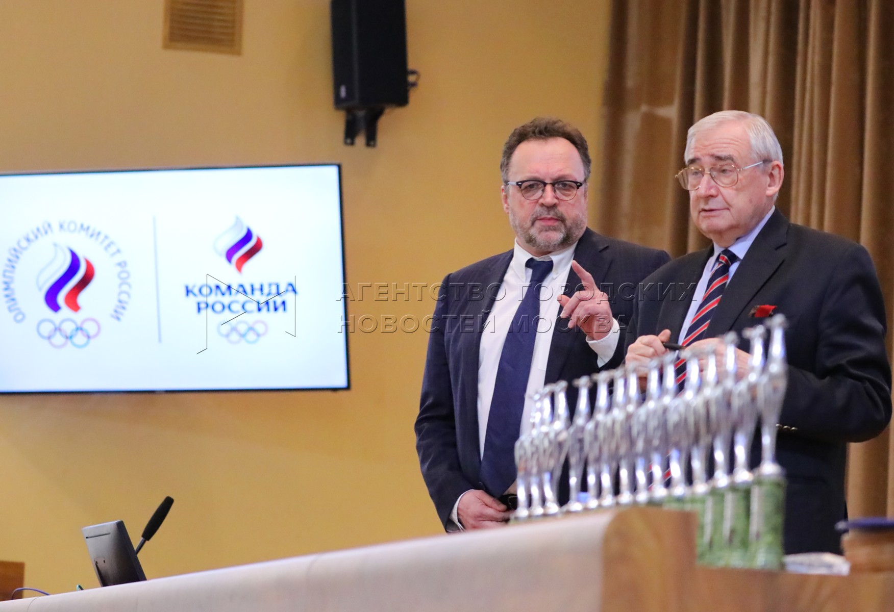 - Описание: Спортивный комментатор Виктор Гусев (слева) и президент Федерации спортивных журналистов России Николай Долгополов на ежегодной церемонии вручения премии Федерации спортивных журналистов России «Серебряная лань» в Олимпийском комитете России.
