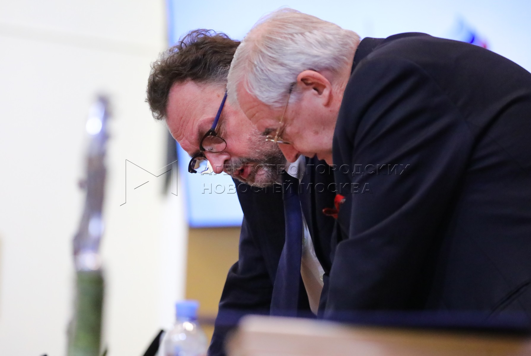 - Описание: Спортивный комментатор Виктор Гусев (слева) и президент Федерации спортивных журналистов России Николай Долгополов на ежегодной церемонии вручения премии Федерации спортивных журналистов России «Серебряная лань» в Олимпийском комитете России.
