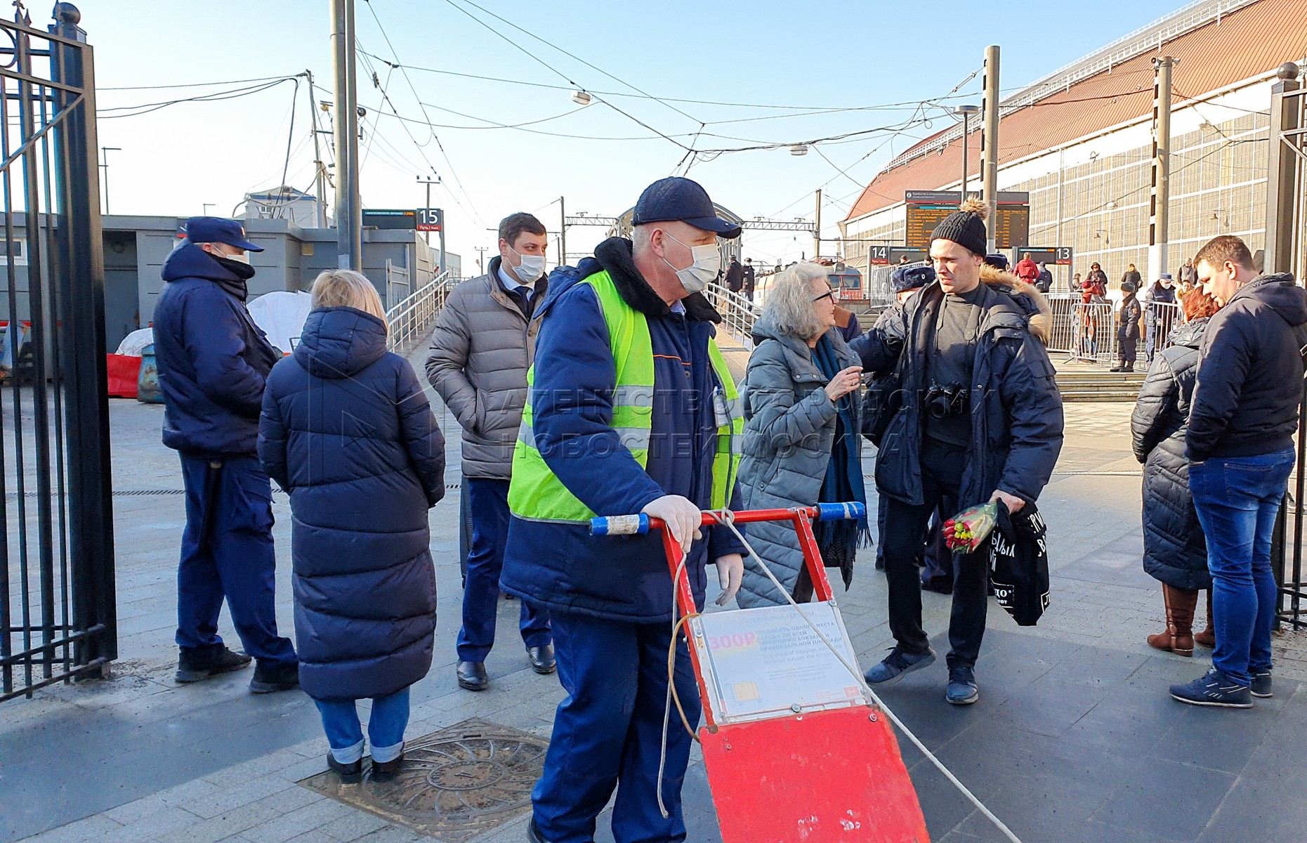 • Описание: Ситуация на Киевском вокзале после прибытия поезда №006К Киев - Москва, в котором ранее была выявлена пассажирка с подозрением на коронавирус.