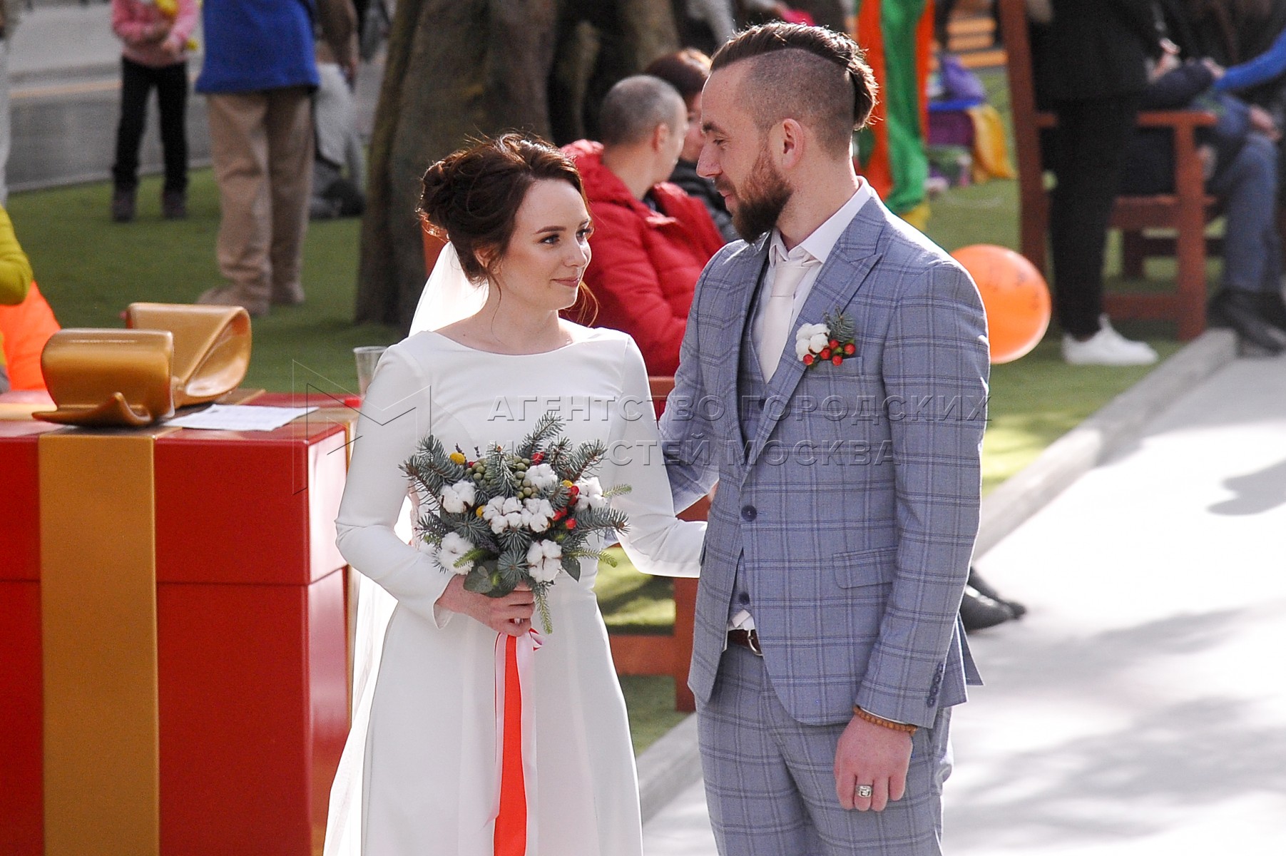 • Описание: Церемония бракосочетания в парке «Остров мечты» во время официального открытия парка развлечений в Нагатинской пойме.