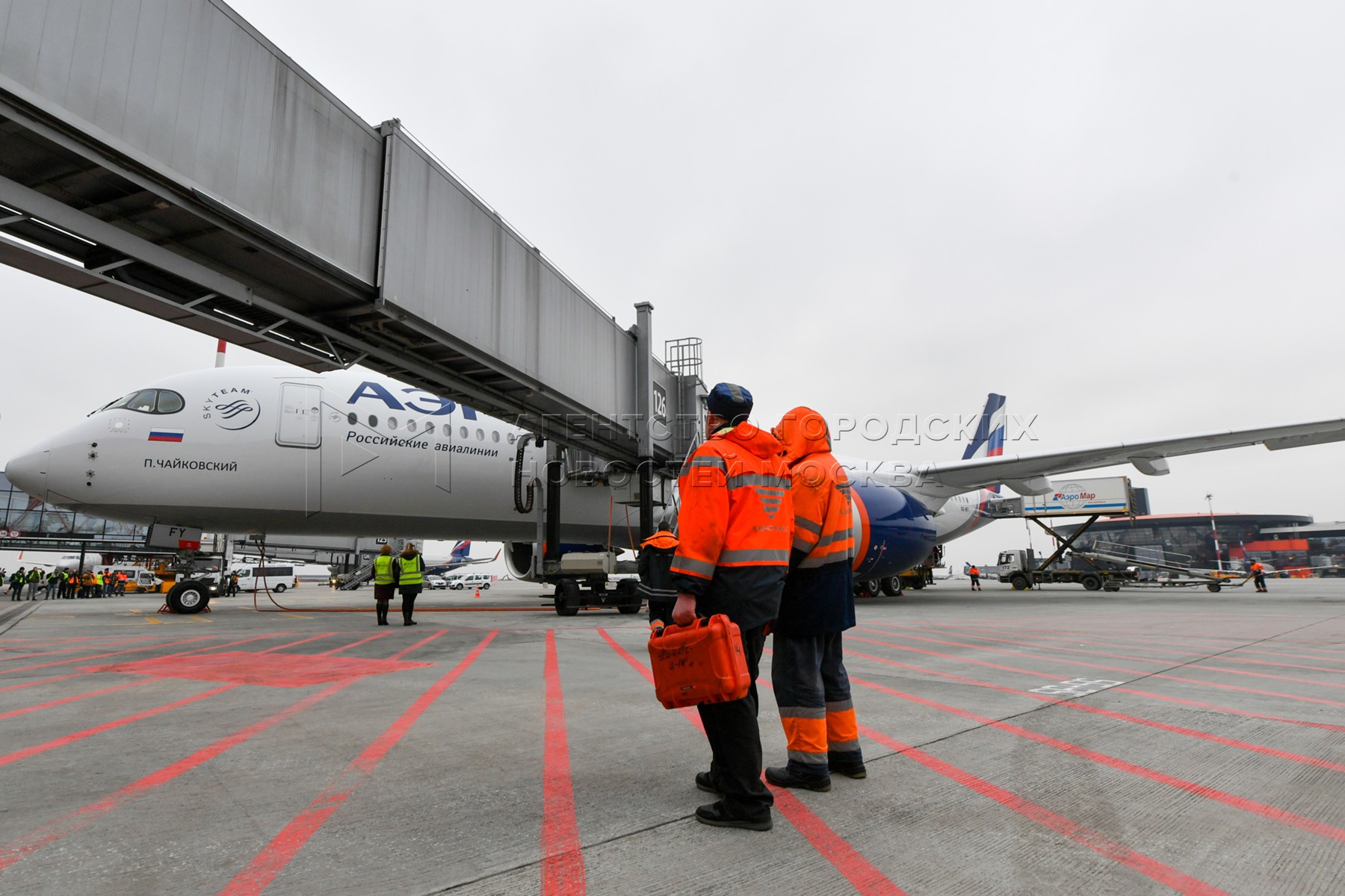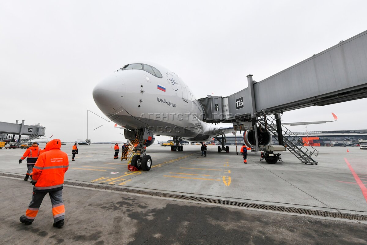 Встреча первого самолета Airbus A350-900 авиакомпании «Аэрофлот» в аэропорту Шереметьево.