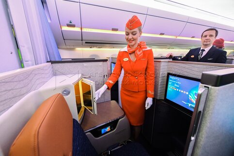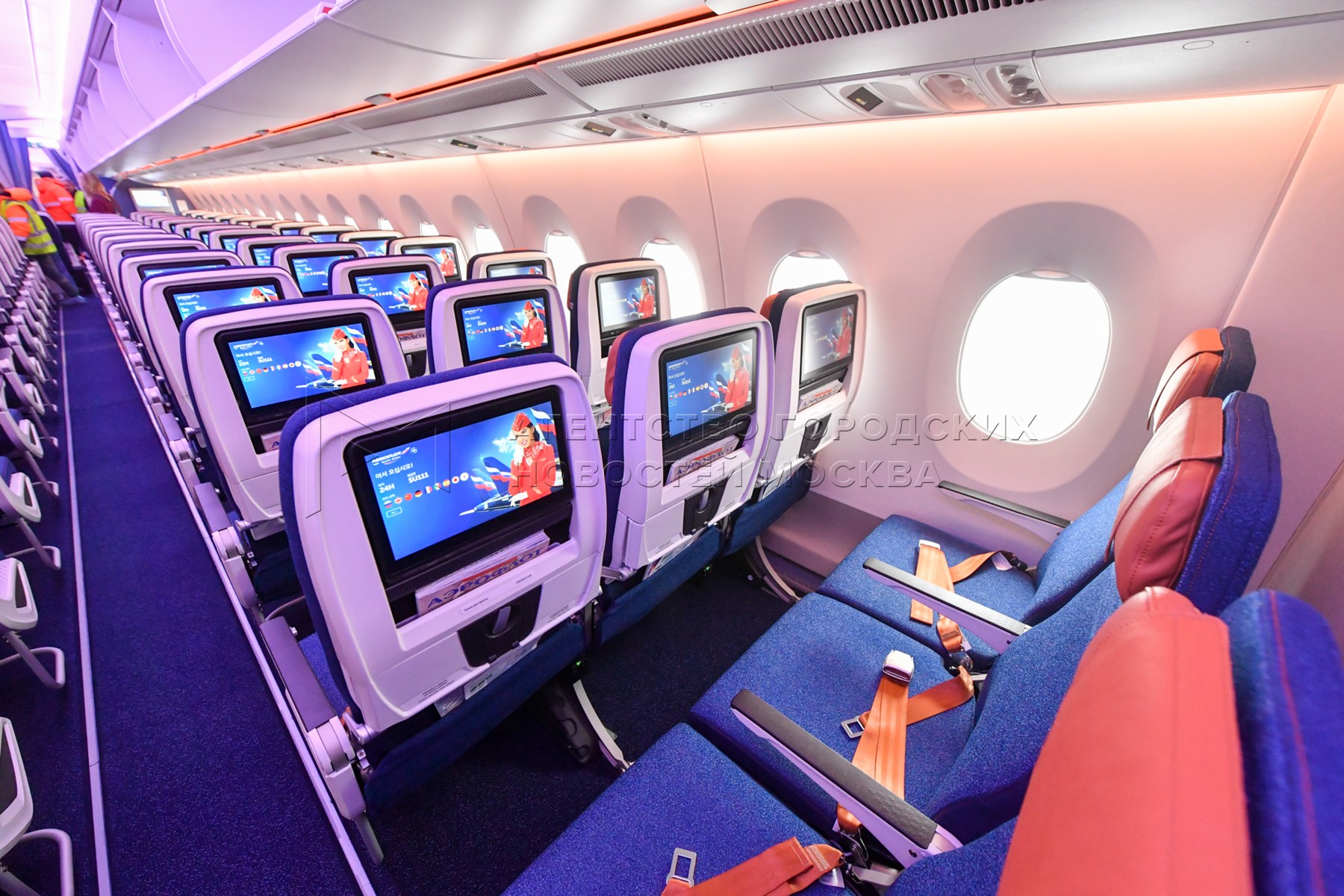 Встреча первого самолета Airbus A350-900 авиакомпании «Аэрофлот» в аэропорту Шере...