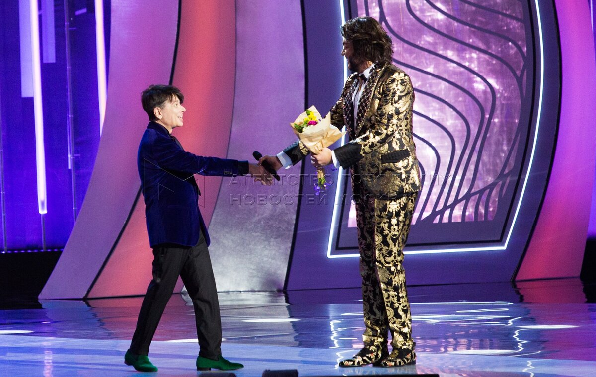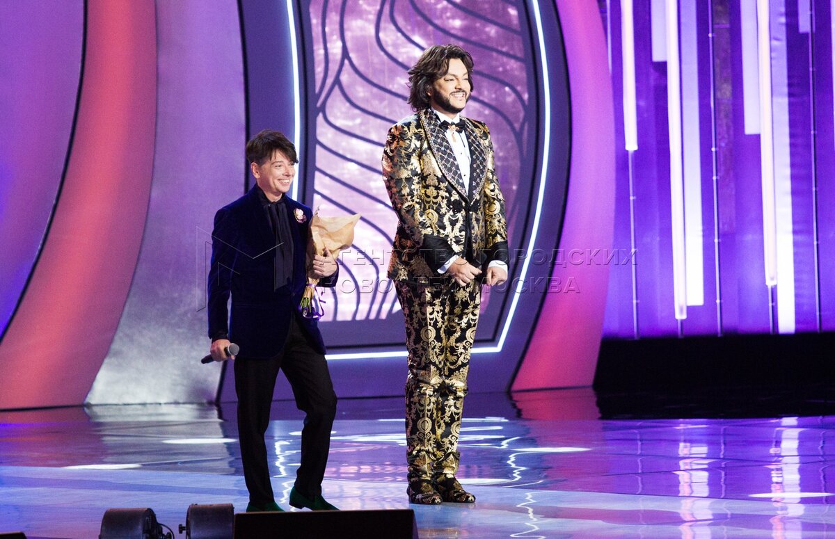 Модельер Валентин Юдашкин (слева) и певец Филипп Киркоров во время праздничного ш...