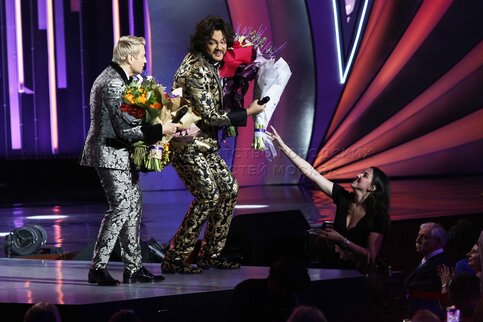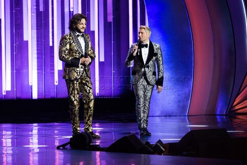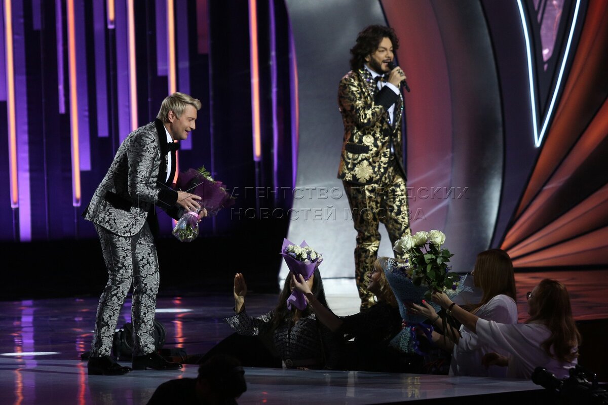 Певцы Николай Басков (слева) и Филипп Киркоров во время праздничного шоу Валентин...