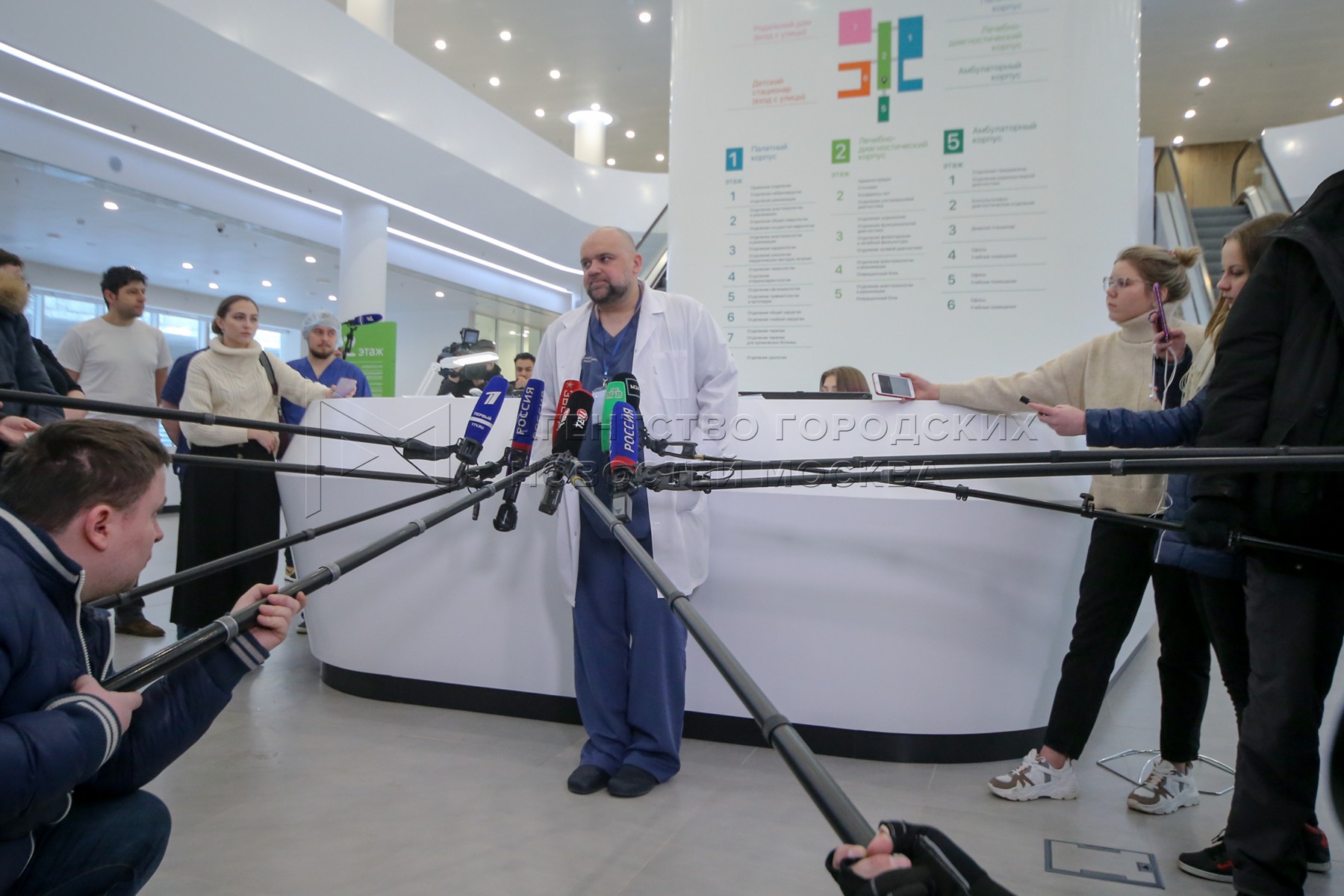 • Описание: Главный врач московской больницы №40 в Коммунарке Денис Проценко во время общения с журналистами в многопрофильном медицинском центре «Новомосковский».