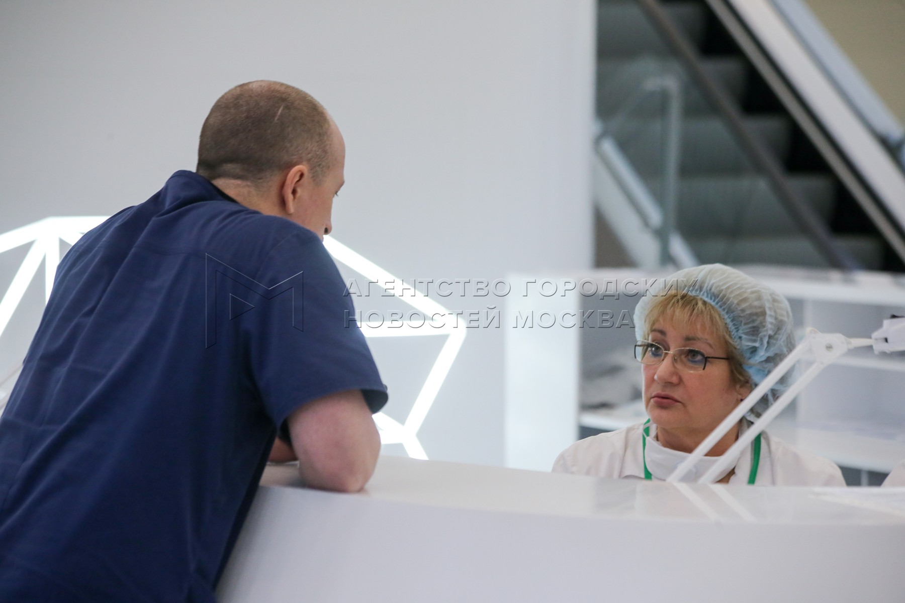 Врачи во время общения с журналистами в многопрофильном медицинском центре «Новом...