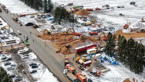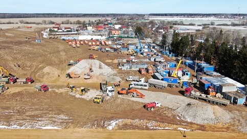 Вид с квадрокоптера на ход строительства мобильного комплекса инфекционной больницы в ТиНАО.