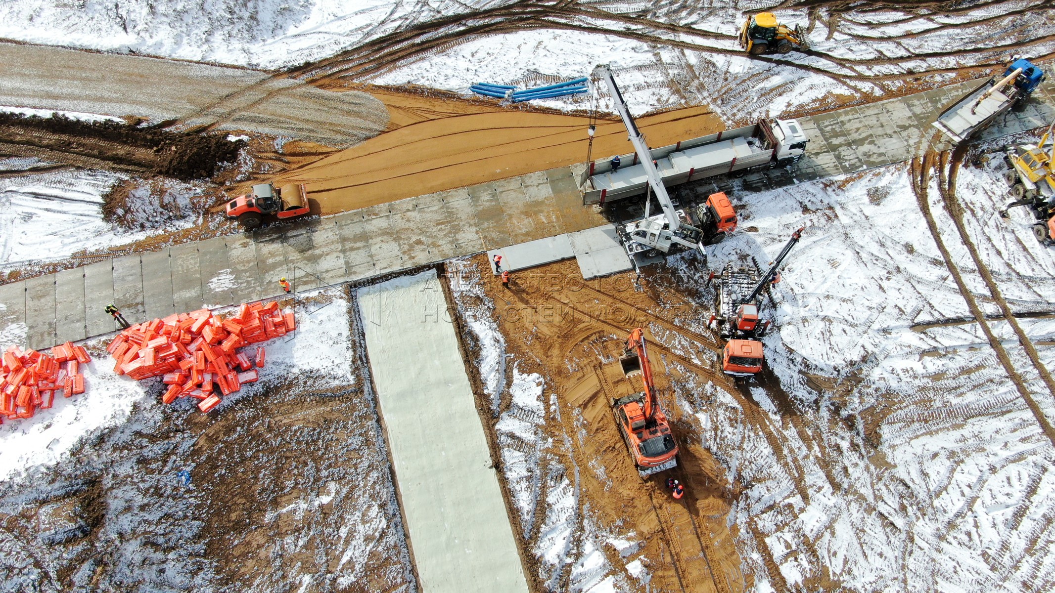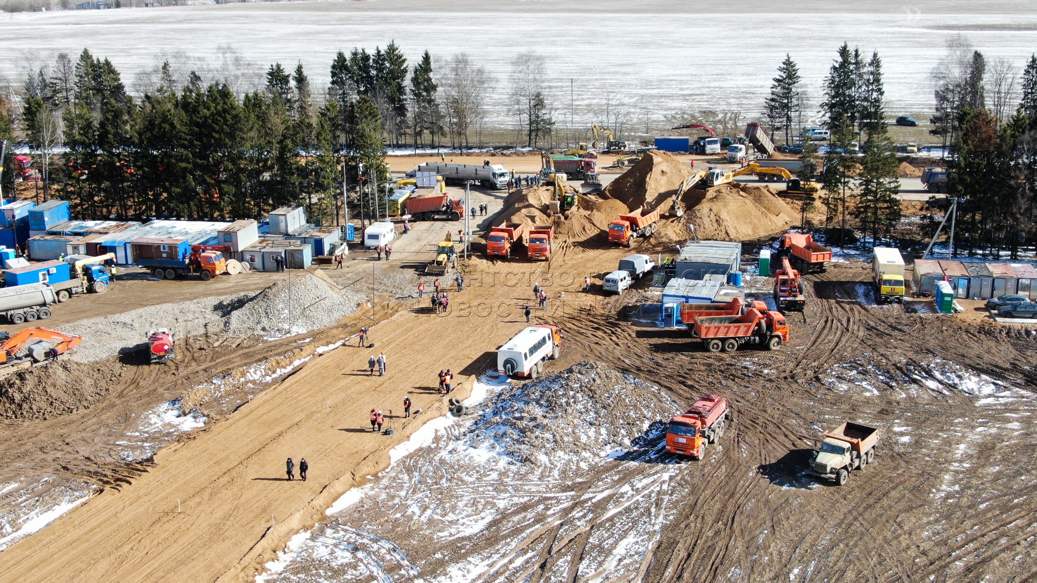 • Описание: Вид с квадрокоптера на ход строительства мобильного комплекса инфекционной больницы в ТиНАО.