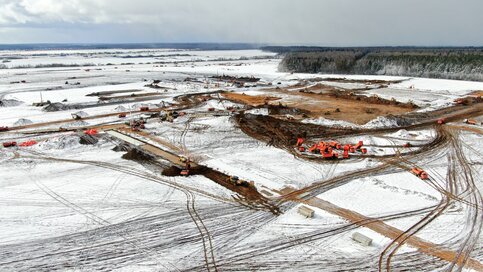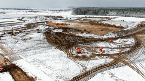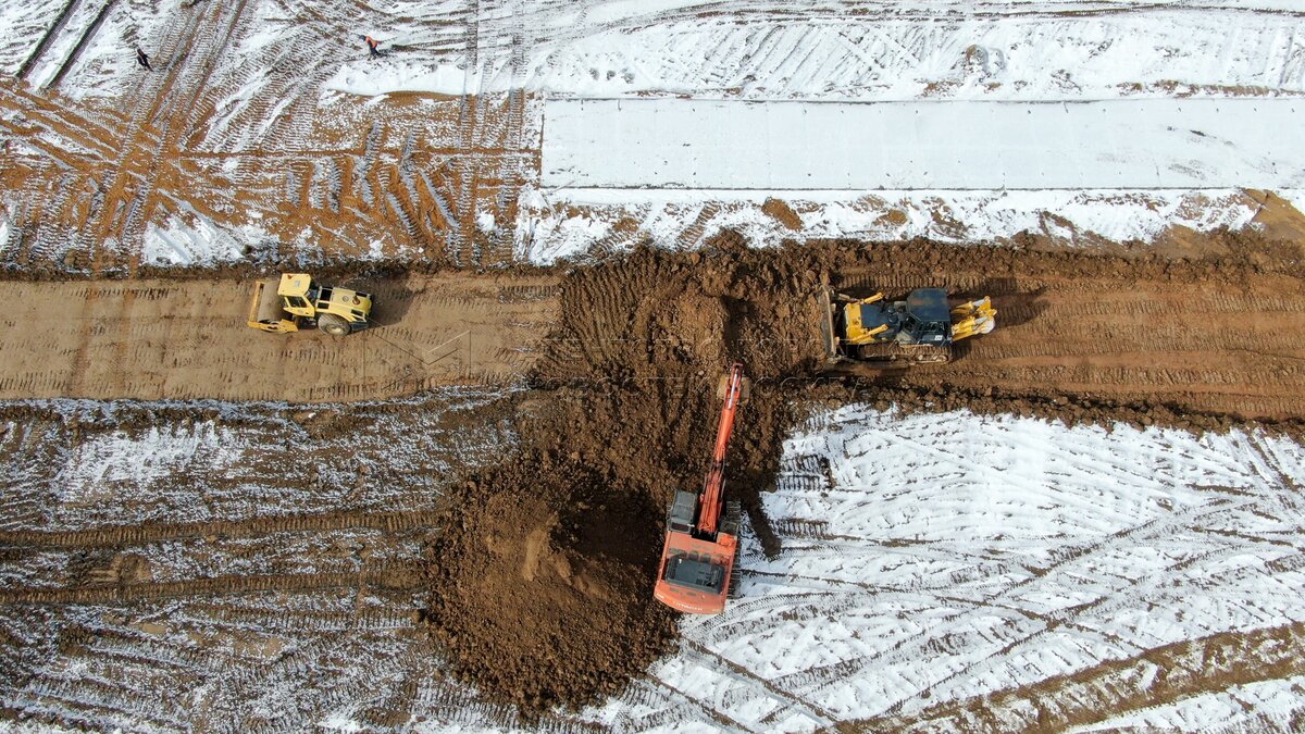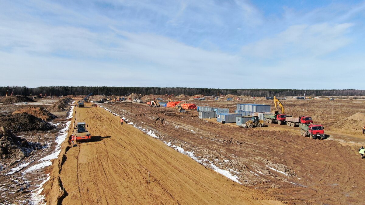 Вид с квадрокоптера на ход строительства мобильного комплекса инфекционной больни...