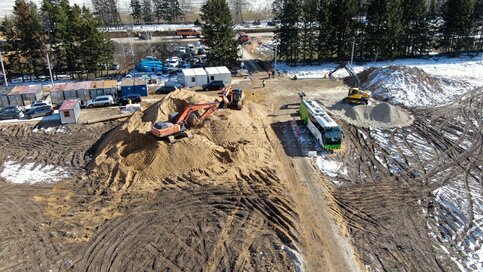 • Заголовок: Вид с квадрокоптера на ход строительства мобильного комплекса инфекционной больницы в ТиНАО
