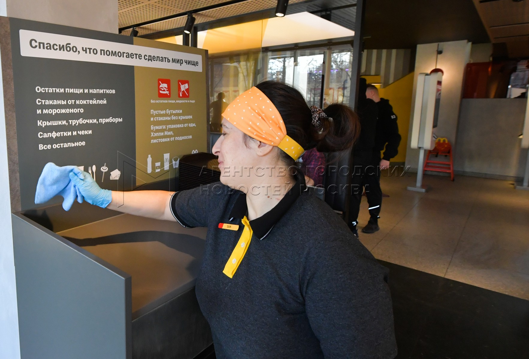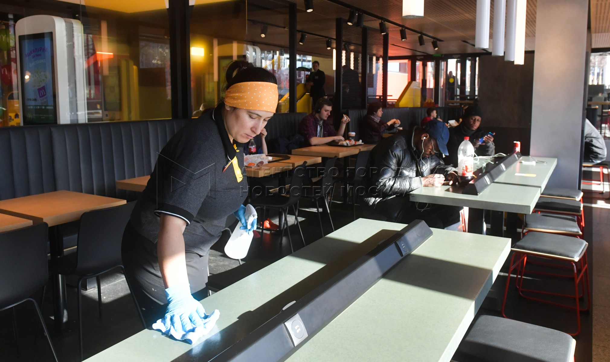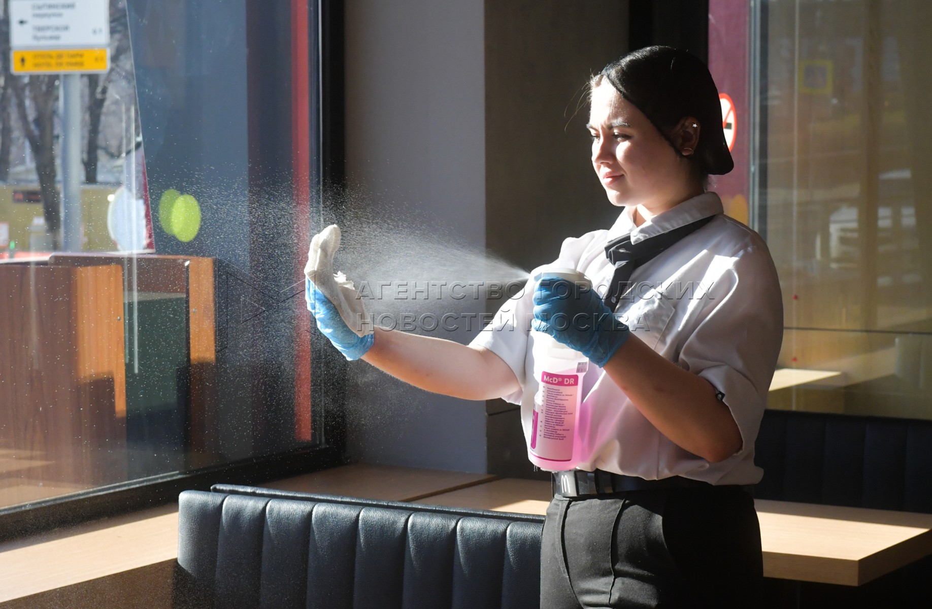 Меры профилактики распространения заболеваний в ресторане McDonald's у станции метро «Пушкинская».