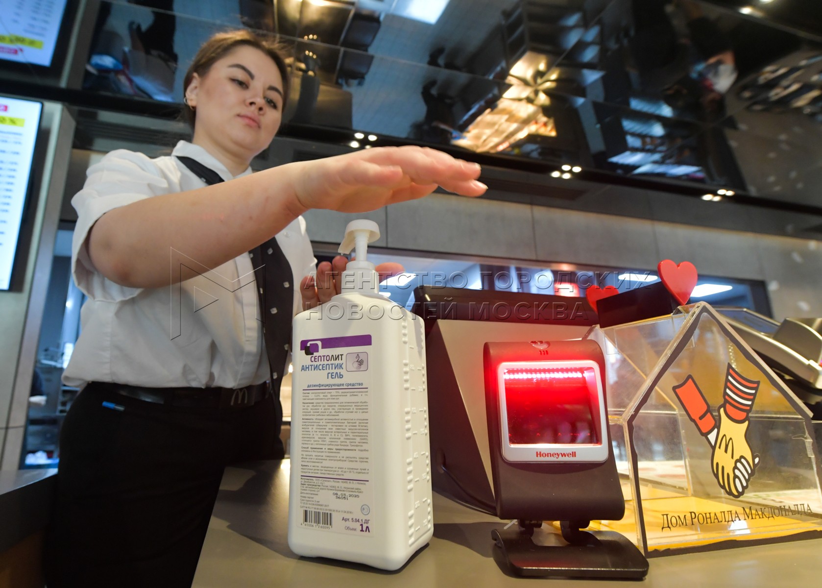 • Описание: Меры профилактики распространения заболеваний в ресторане McDonald's у станции метро «Пушкинская».