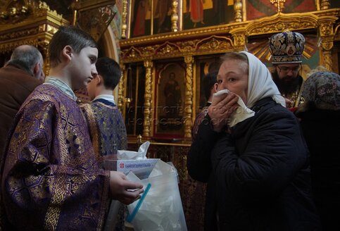 Профилактические меры в храме Илии Пророка в Черкизово в связи с ситуацией с коронавирусом.