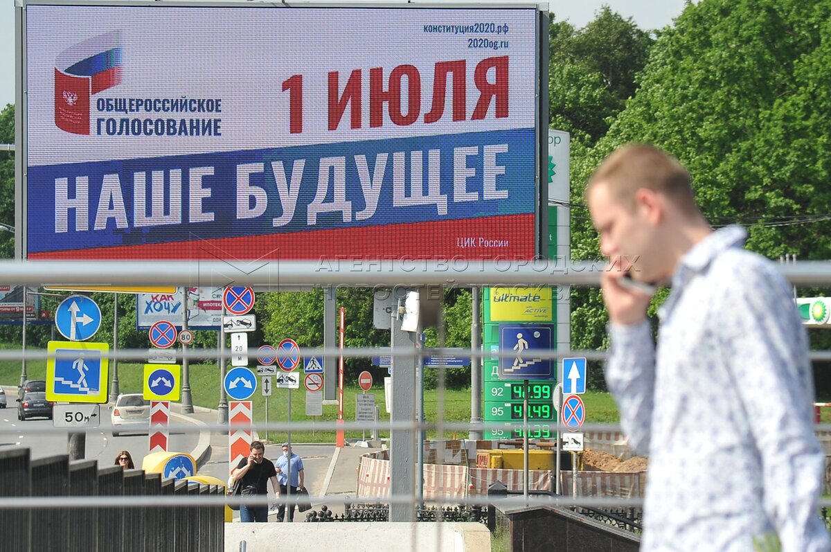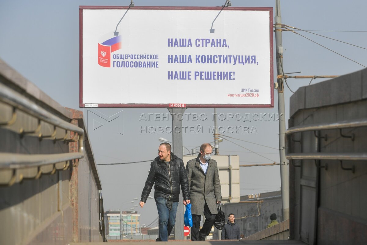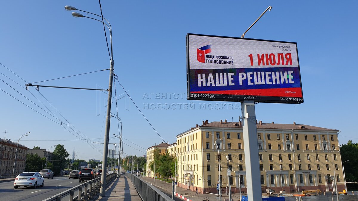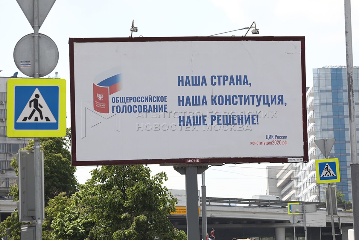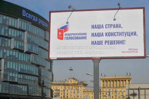 • Описание: Рекламные щиты к общероссийскому голосованию по внесению поправок в Конституцию РФ на улицах Москвы.