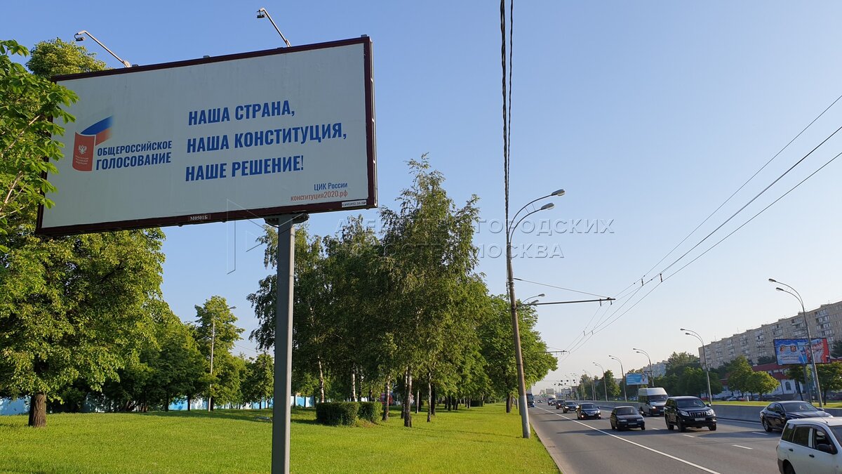 • Заголовок: Рекламные щиты к общероссийскому голосованию по внесению поправок в Конституцию РФ на улицах Москвы